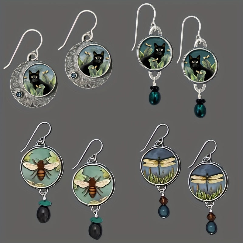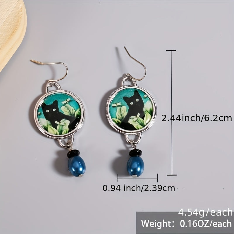 Add a touch of bohemian flair with these ethnic painting faux pearl hook earrings. Made of alloy with 925 silver plating, these earrings are perfect as a gift for her.