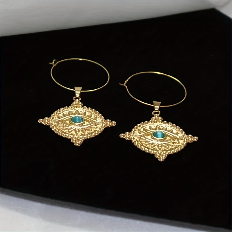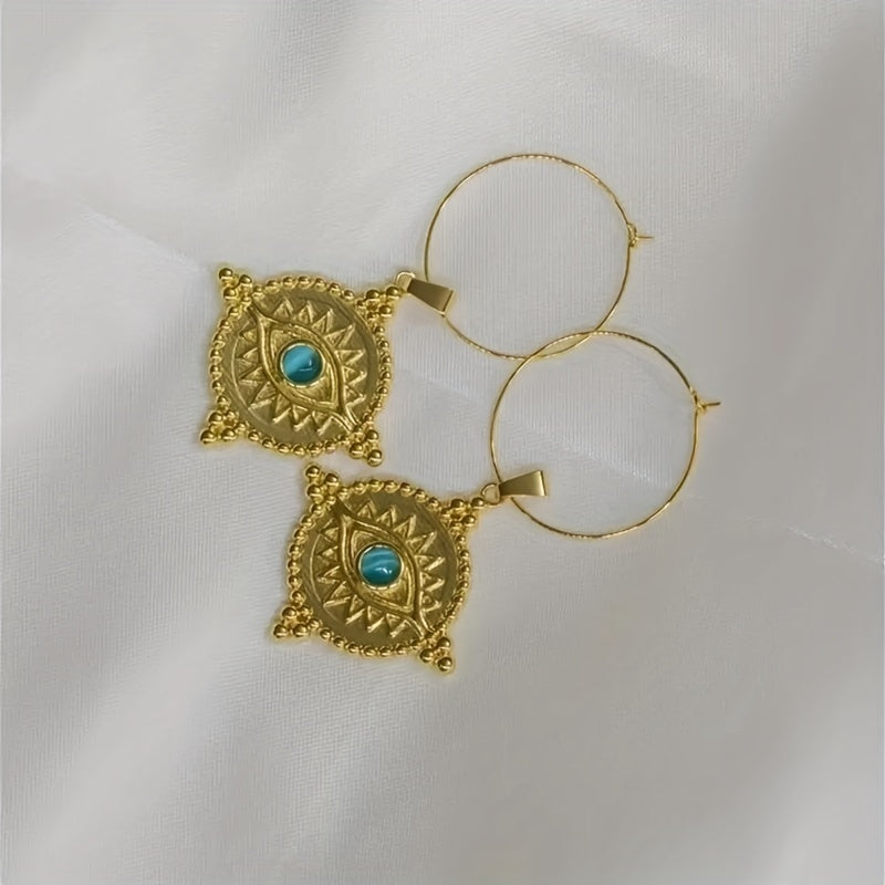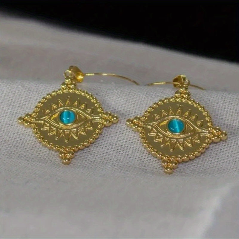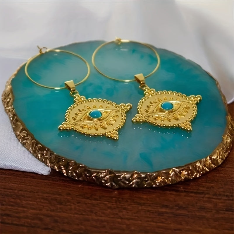 Enhance your style with these vibrant Bohemian Evil Eye drop earrings. Perfect for weddings, engagements, or as a special gift.