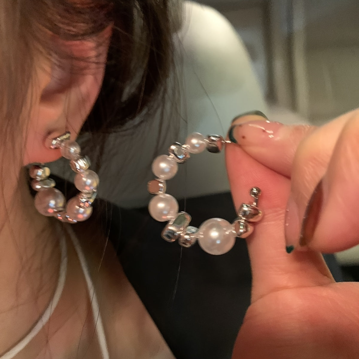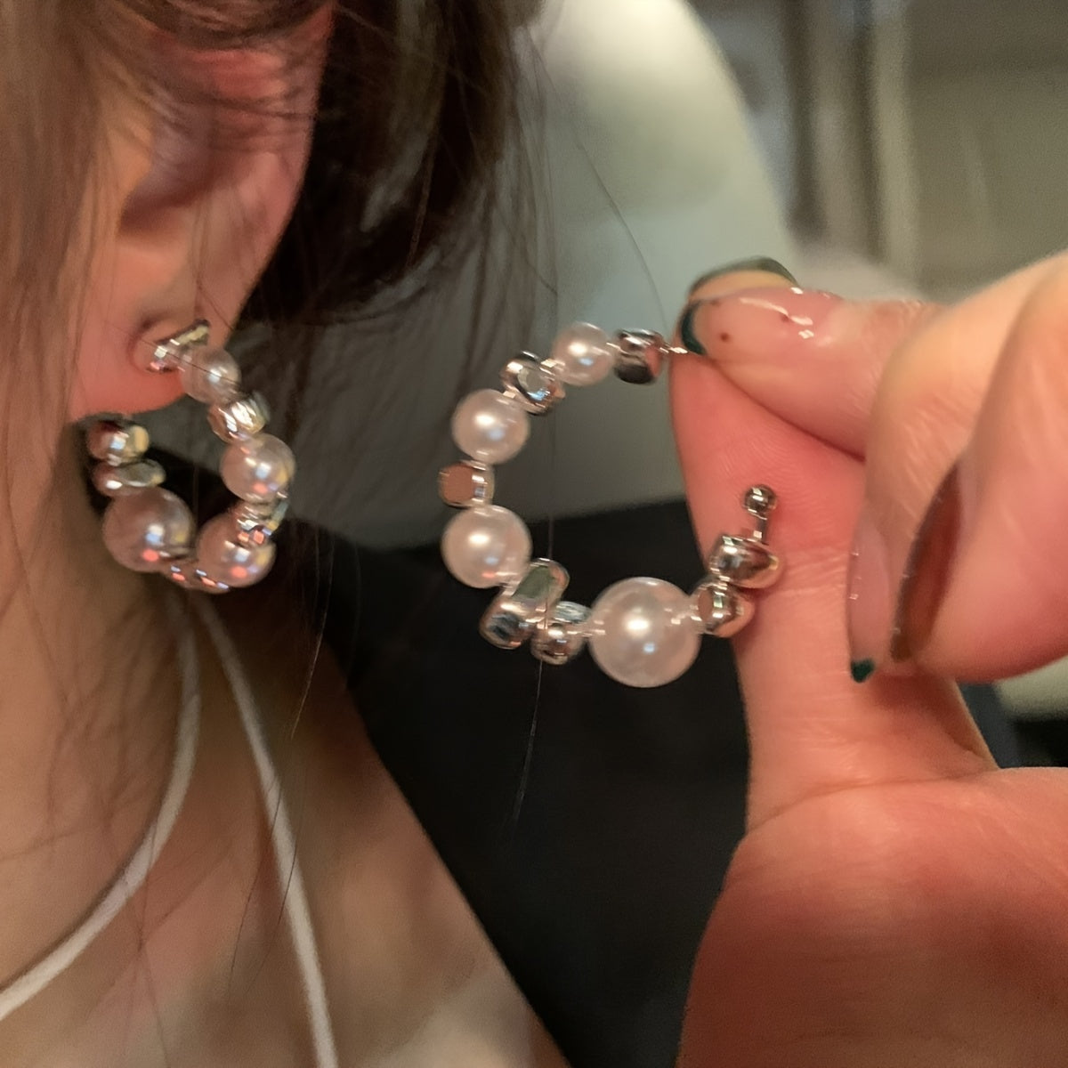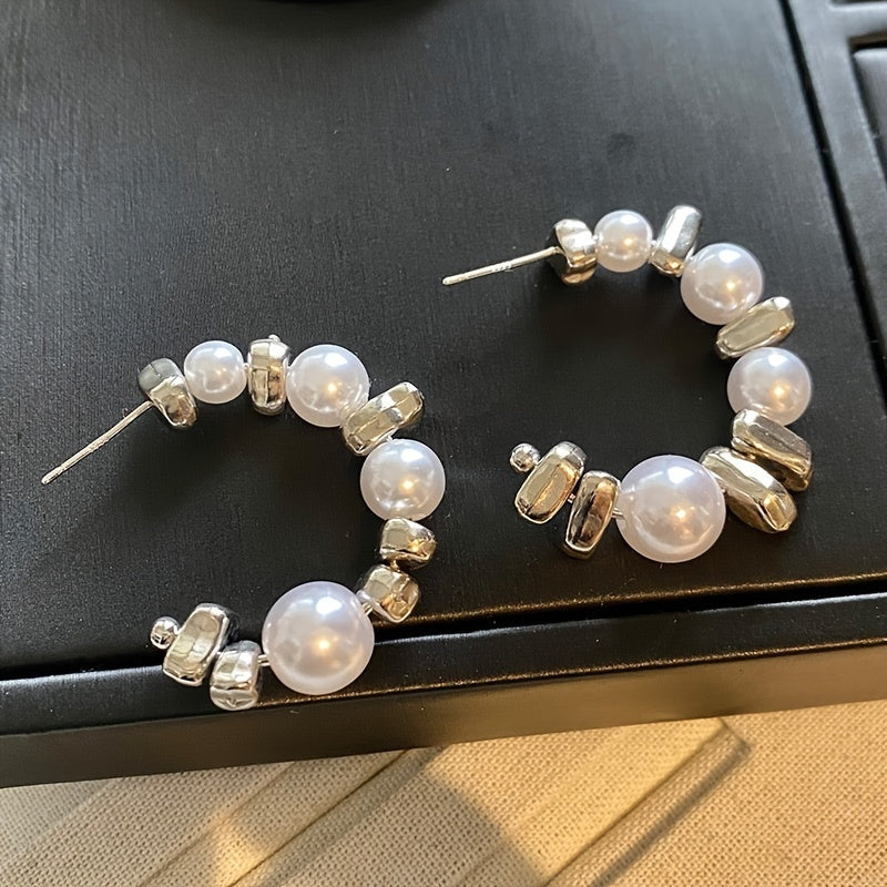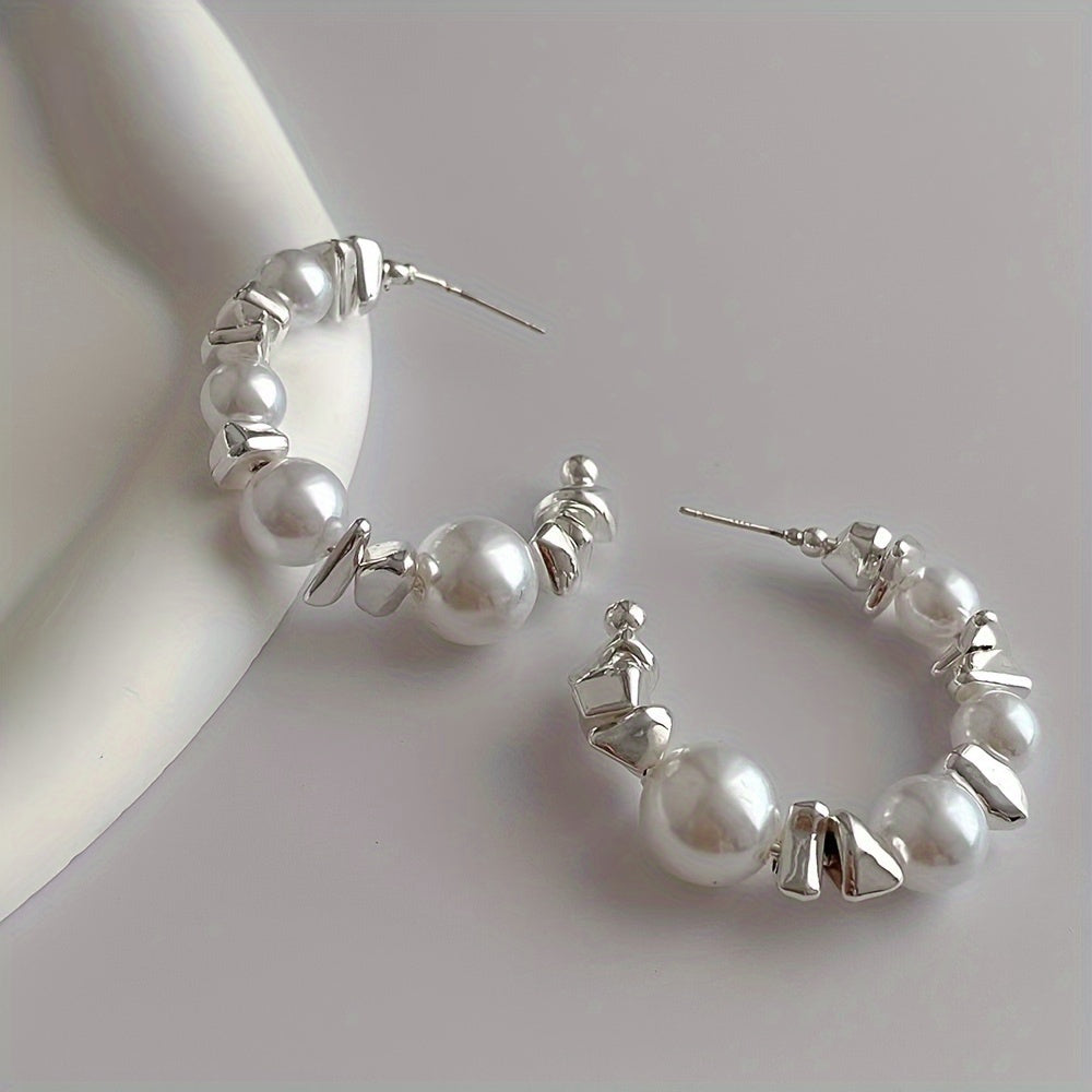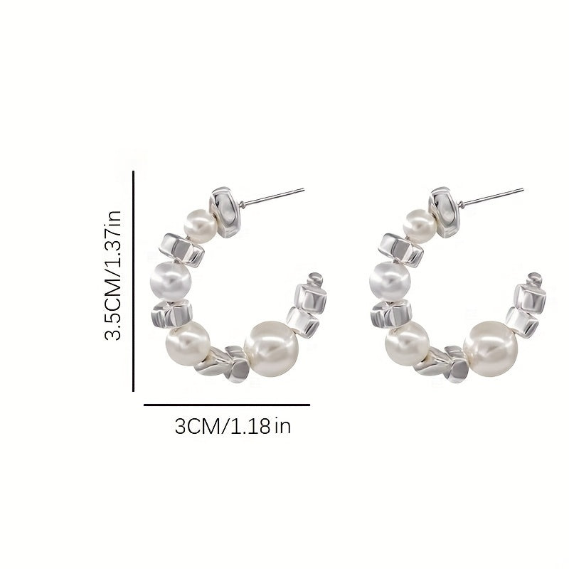 Enhance your look with these stunning stud earrings featuring faux pearls and moissanite stones. The 925 silvery posts add a touch of sophistication.