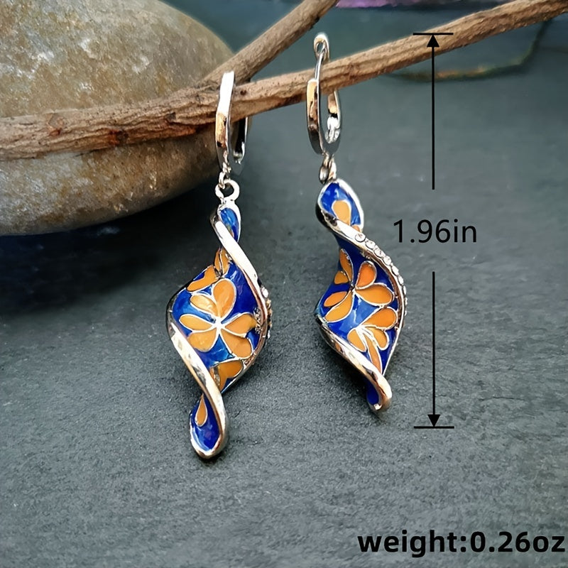 Vintage boho ear buckles featuring colorful zinc alloy and sparkly zircon pendant. Ideal for women who love vintage jewelry. Perfect gift for all occasions.