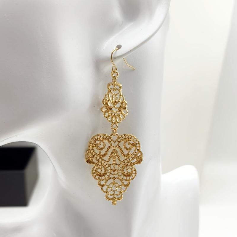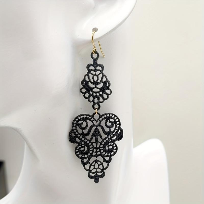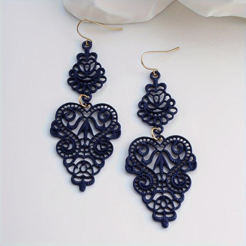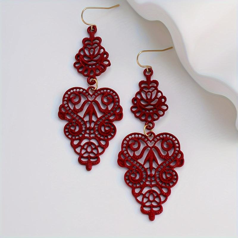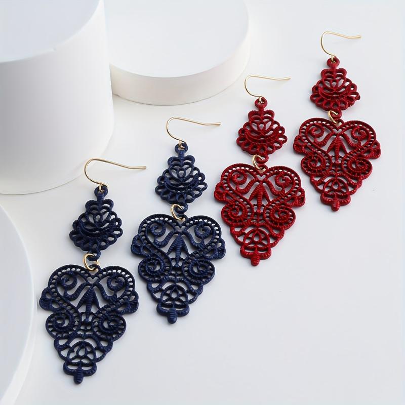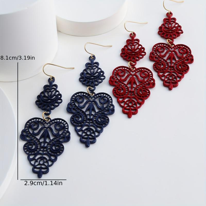 Add a touch of bohemian charm to your look with these vintage drop earrings. Featuring intricate geometric design with a leaf motif in navy and red hues, they are made from high-quality alloy for a lightweight and glossy finish. Perfect for casual attire or parties.