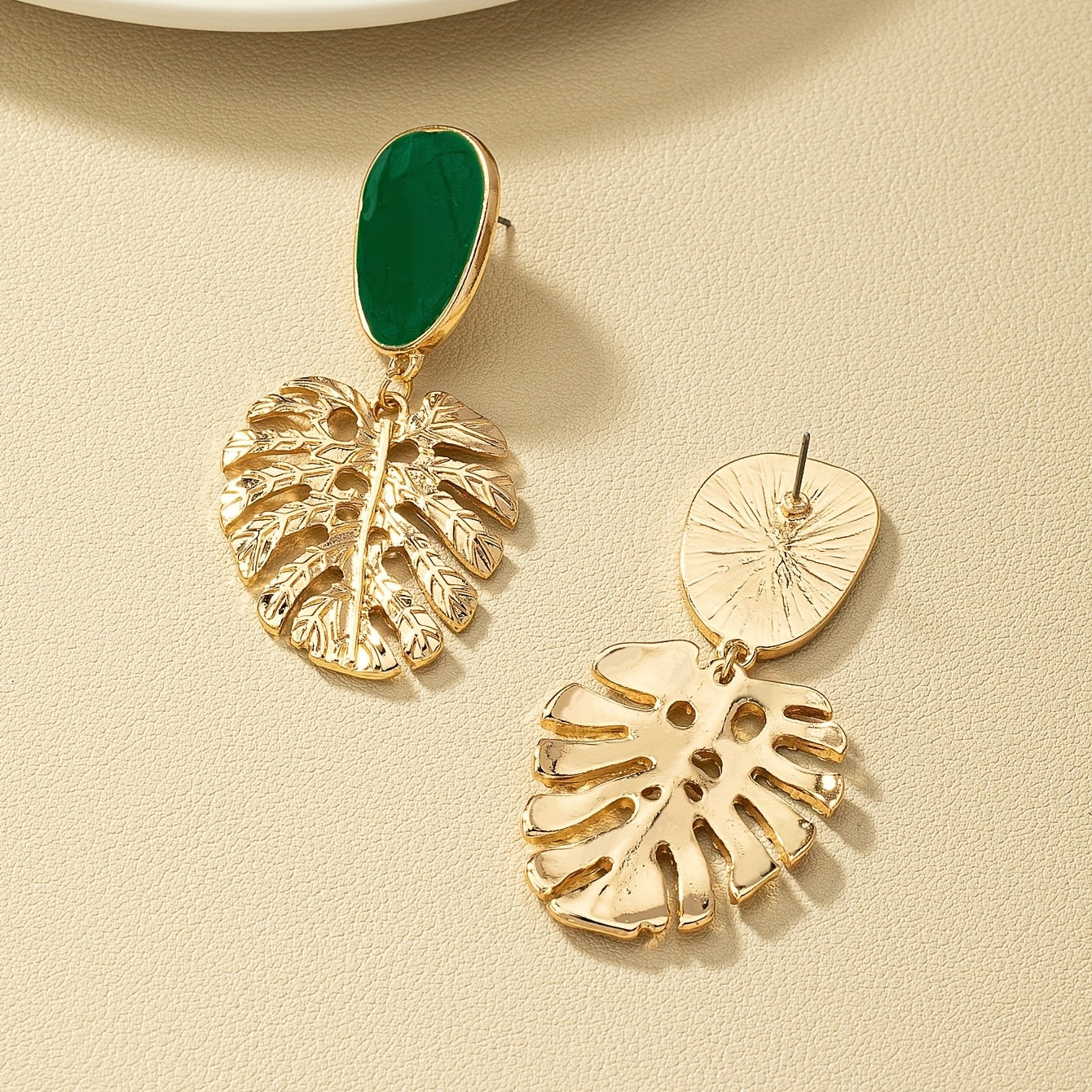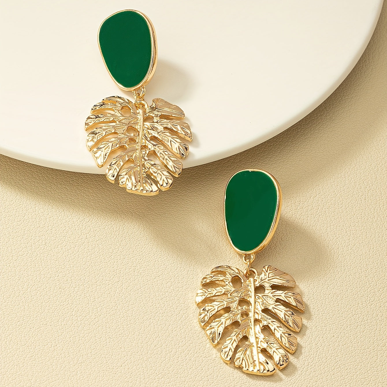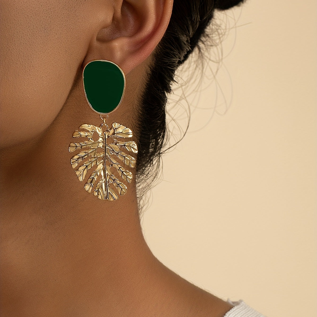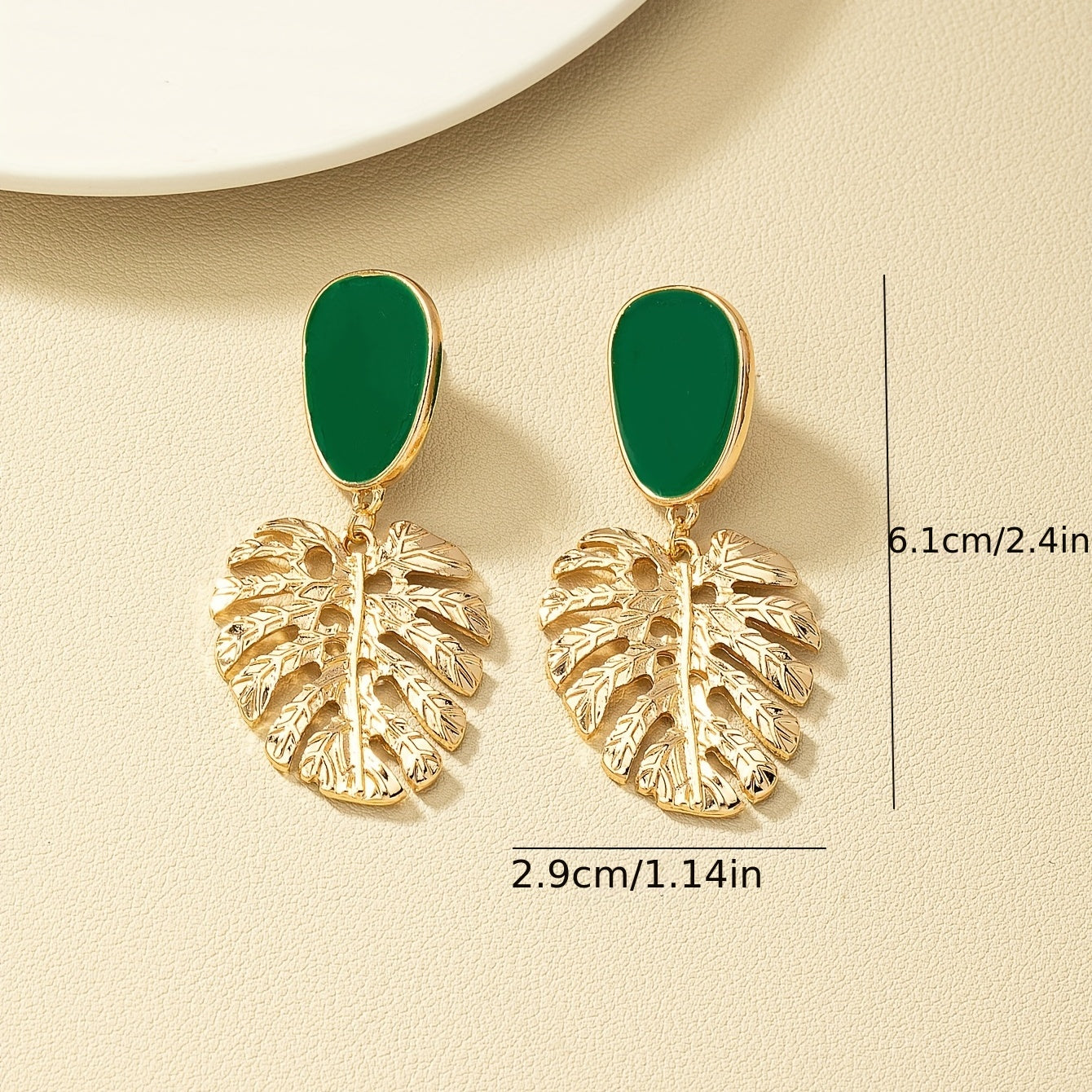 Add a touch of bohemian charm to your look with these green drip oil leaf shape drop earrings. Perfect for holiday vacations or as a stylish gift.