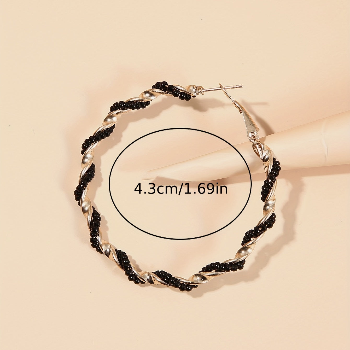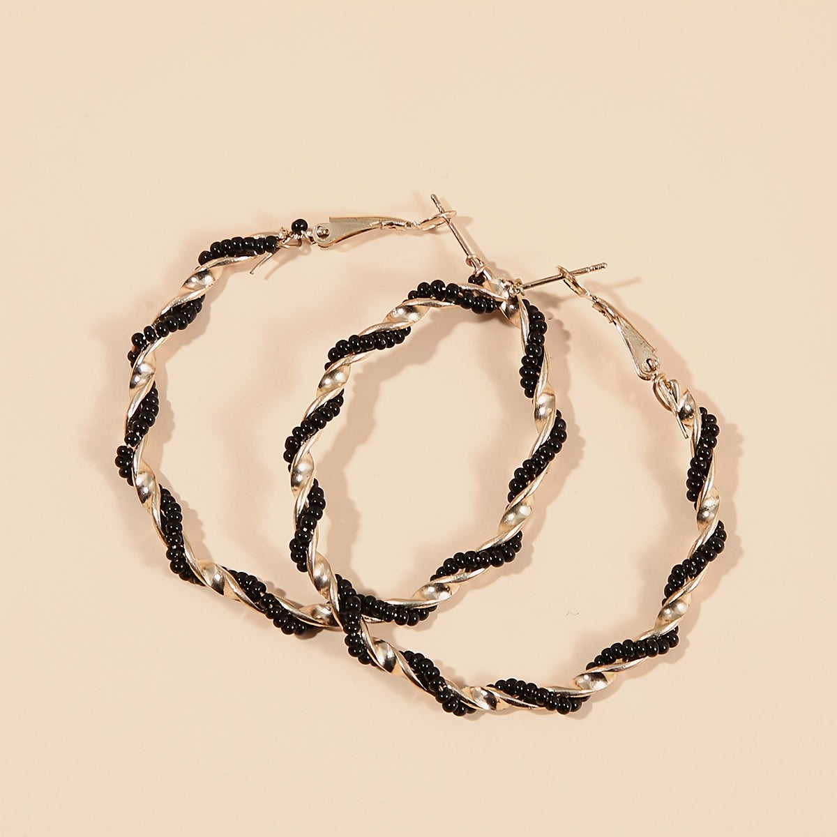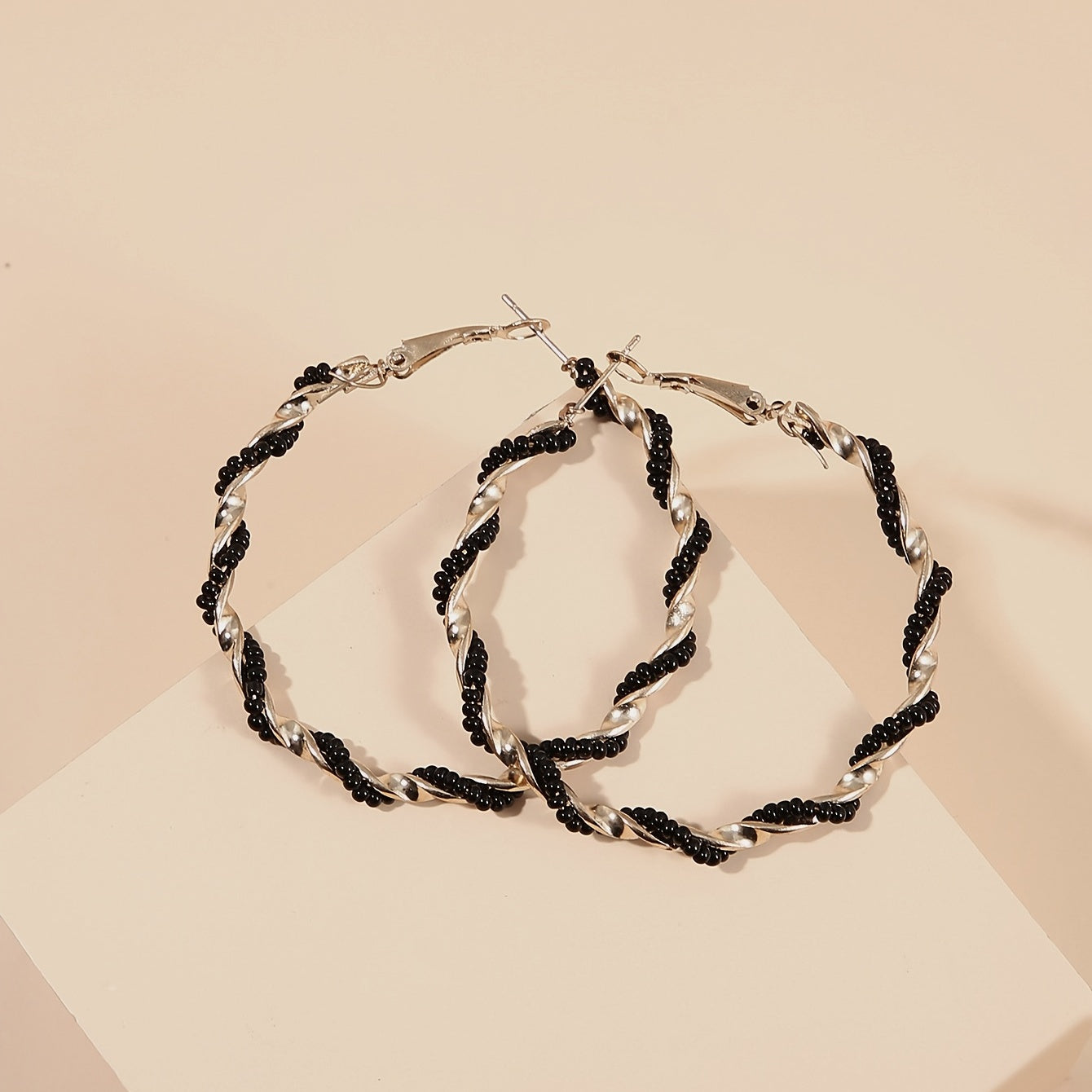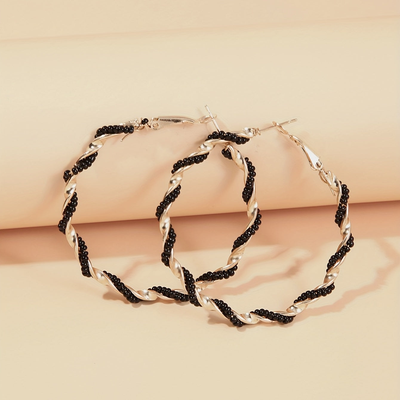 Boho Hoop Earrings With Beads Decor Stainless Steel Silver Plated Jewelry