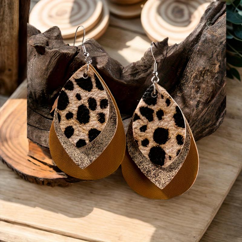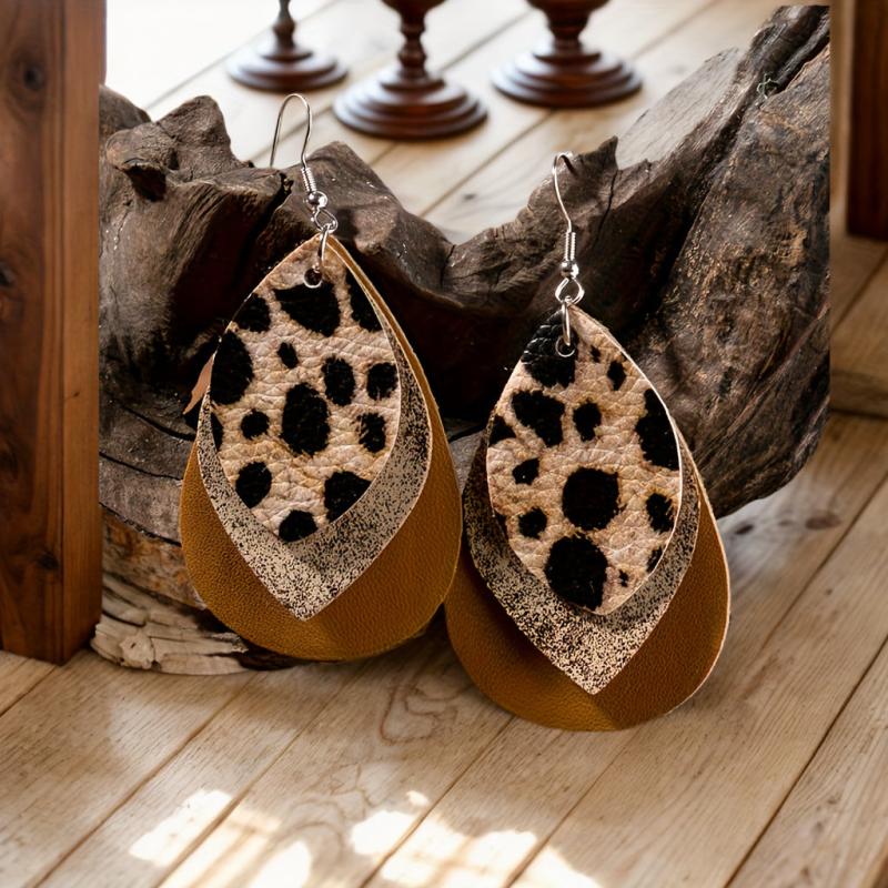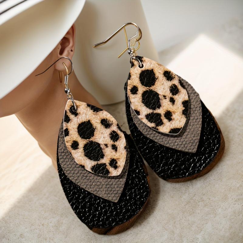 Elevate your style with these retro bohemian leaf drip earrings, featuring PU leather in a golden tone cut out design. Versatile and chic for any occasion.