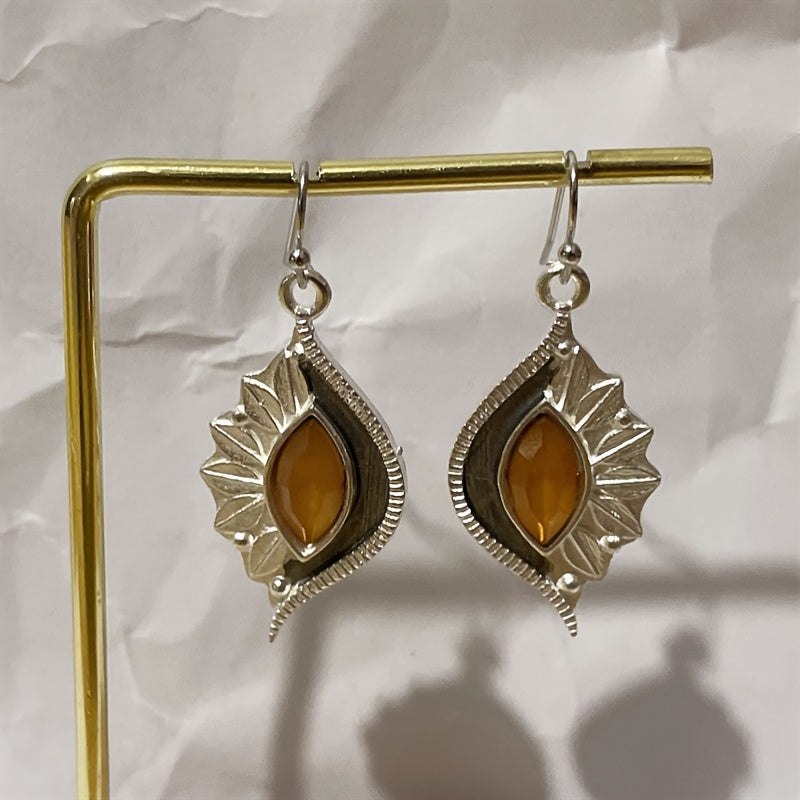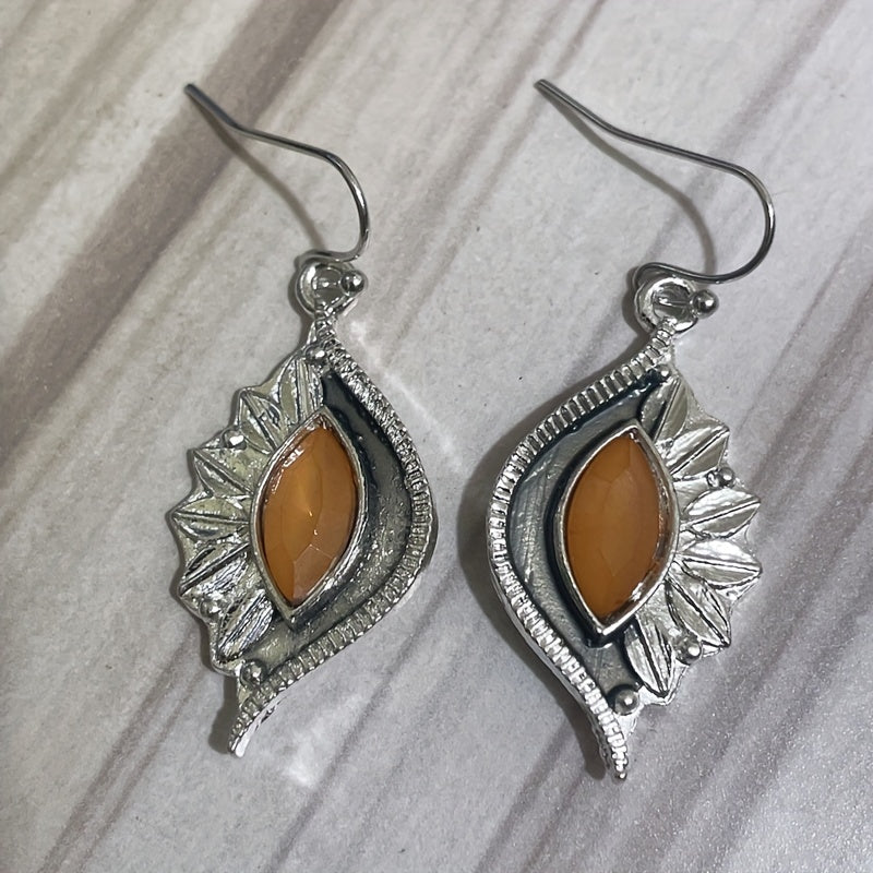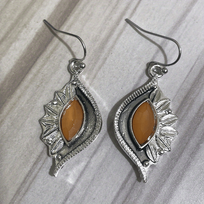 Enhance your boho vintage look with these leaf gemstone drop earrings. Perfect for parties and special occasions.