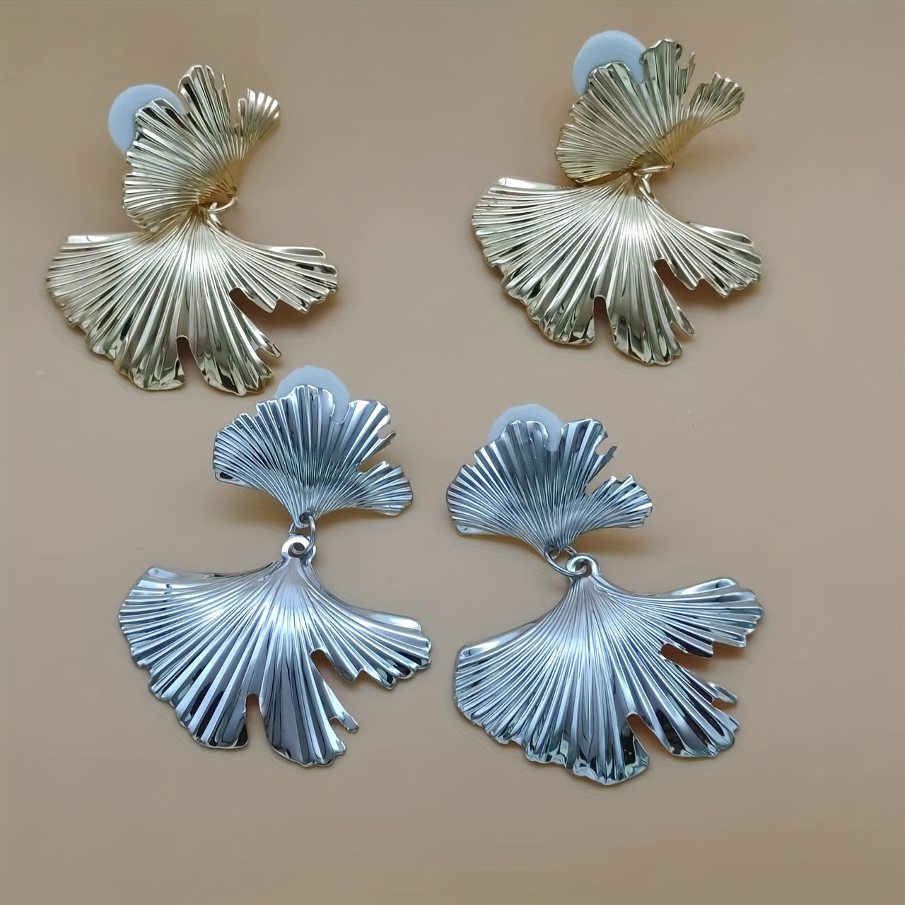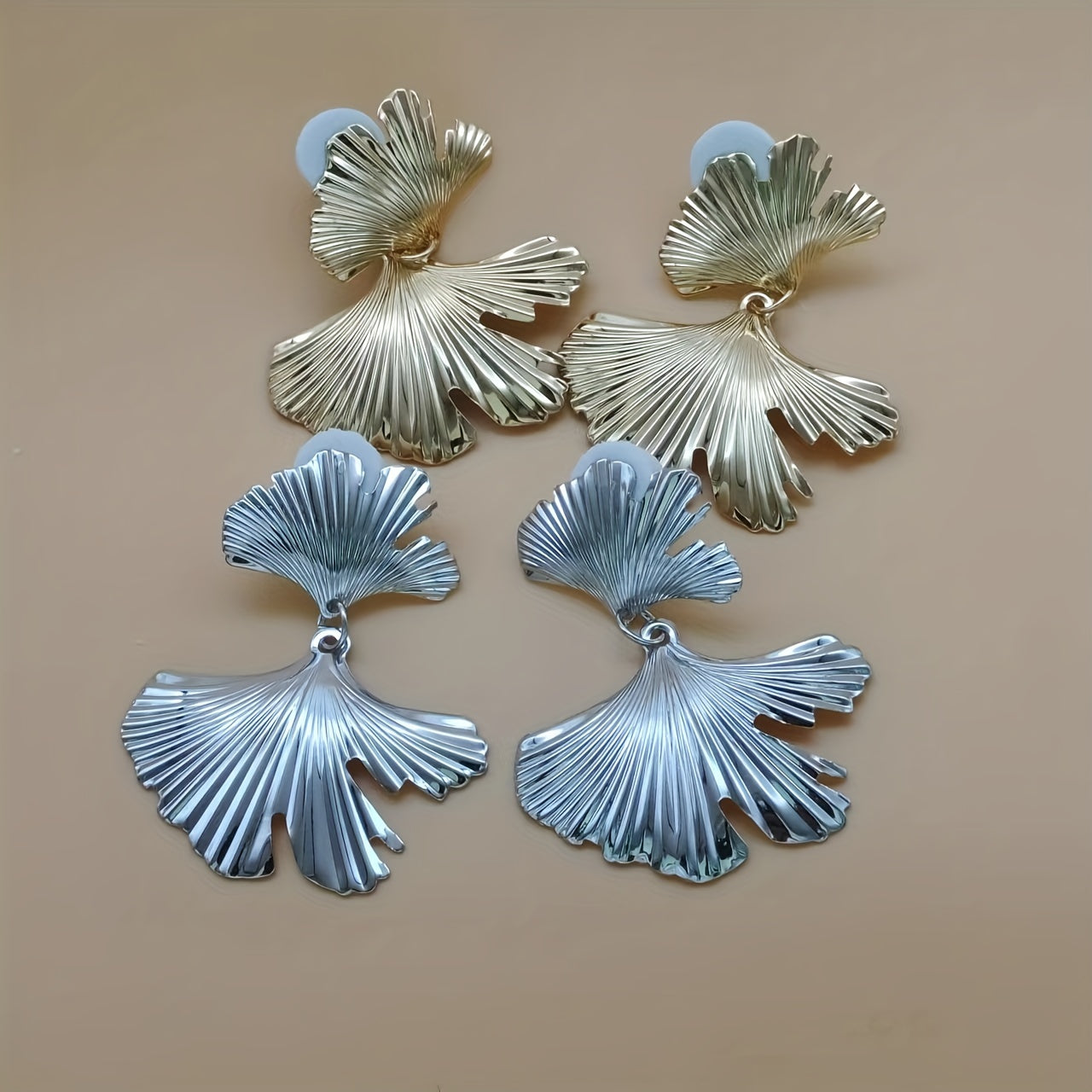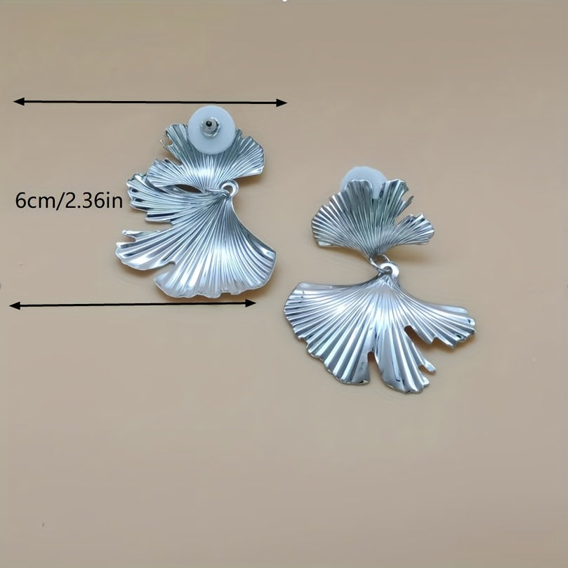 Boho Metal Ginkgo Leaf Earrings Unisex Exaggerated