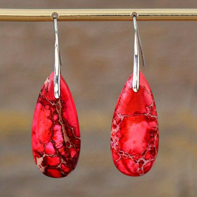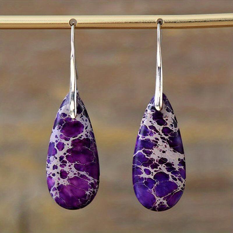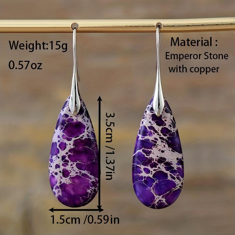 Enhance your style with these boho chic water drop dangle earrings featuring natural imperial stone. Perfect vintage jewelry gift for women.