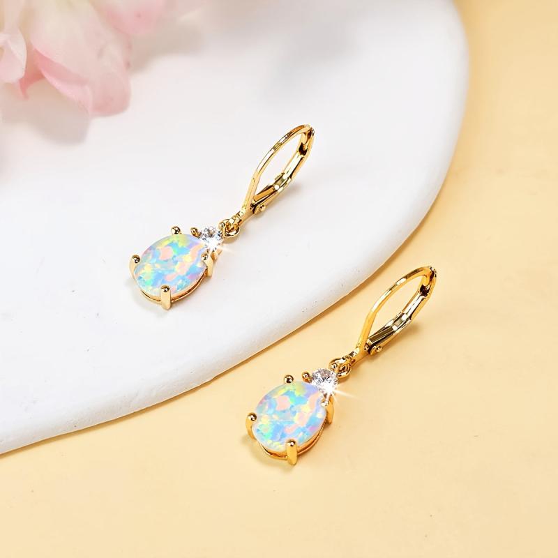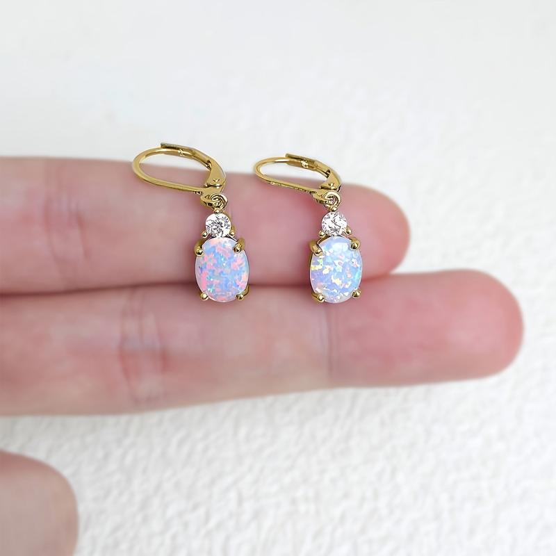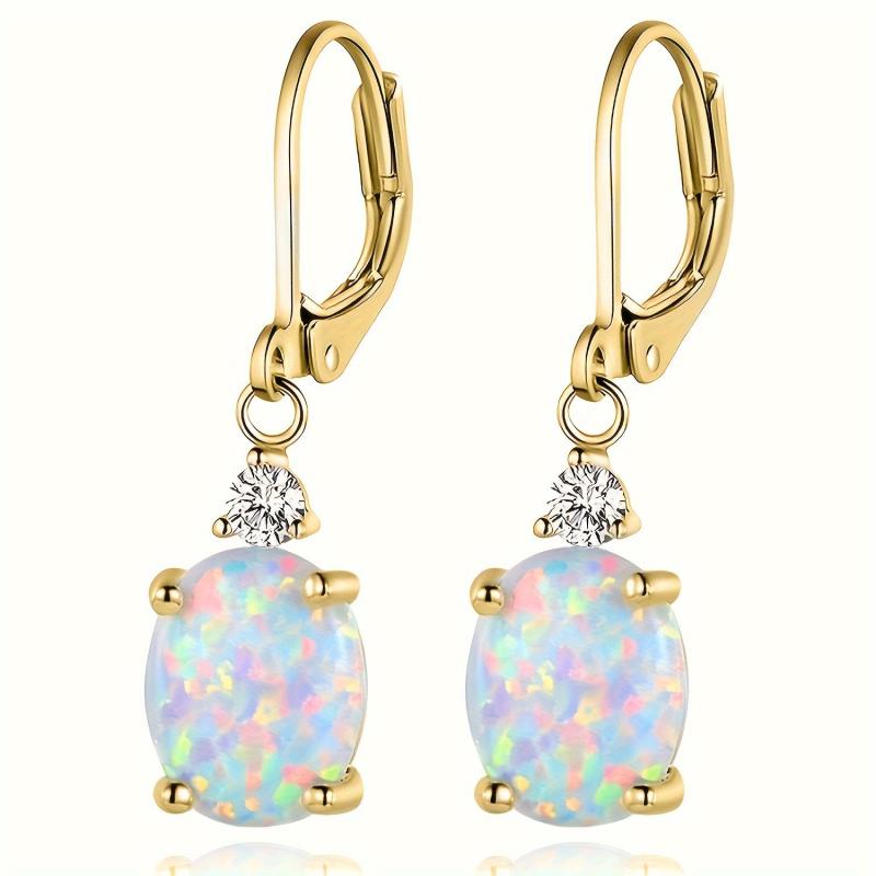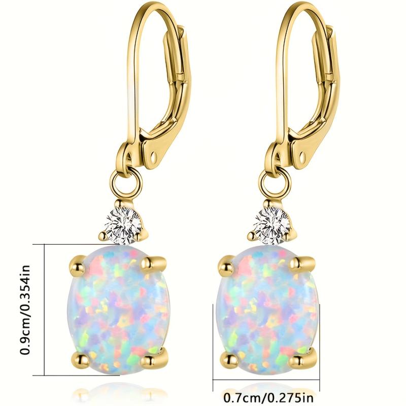 Add a touch of bohemian charm to your outfits with these stunning opal egg shaped dangle earrings. They make the perfect Valentine's gift and are crafted with hypoallergenic copper hooks for sensitive ears.