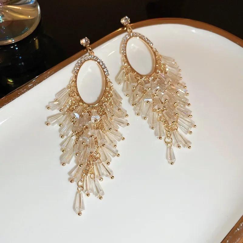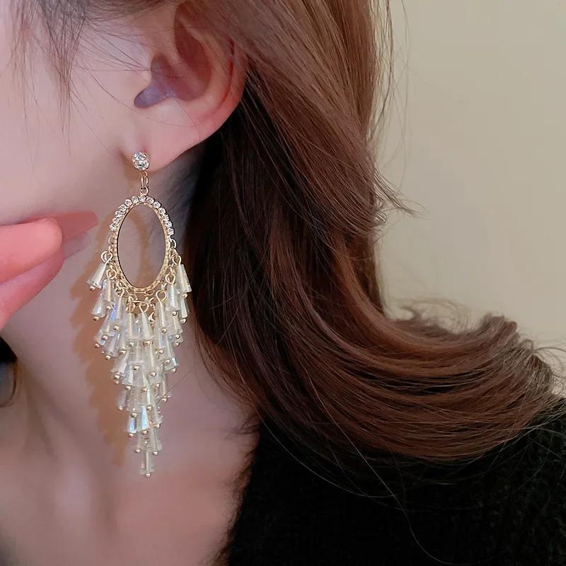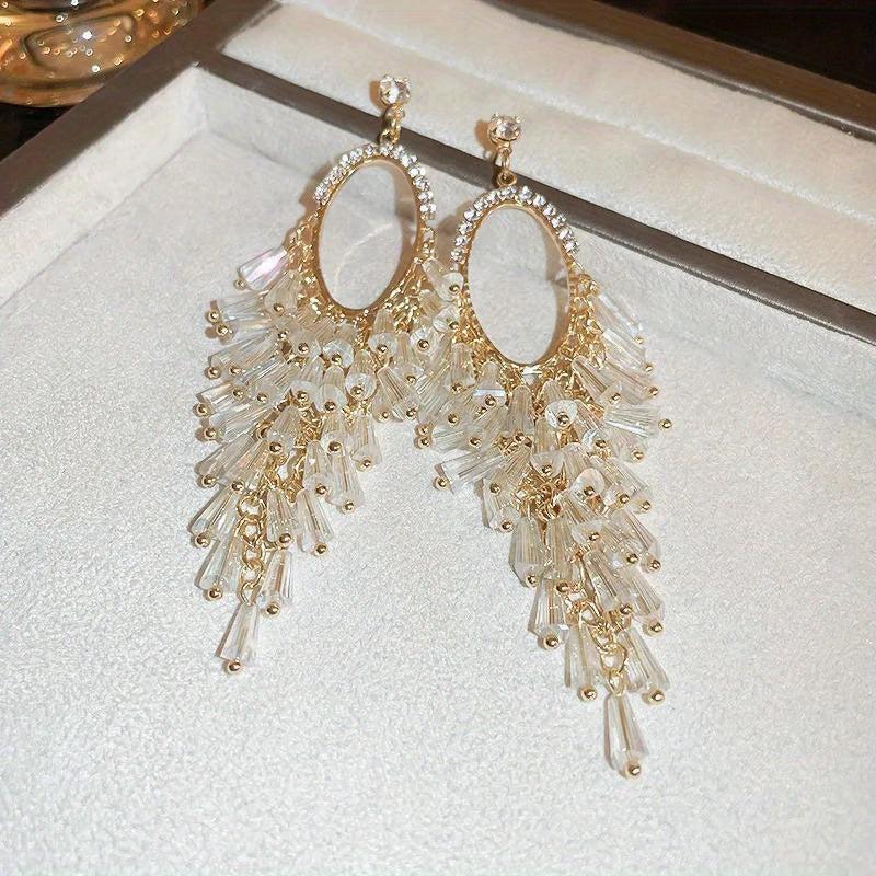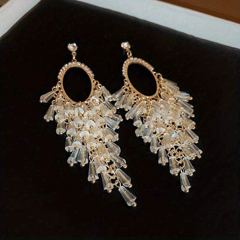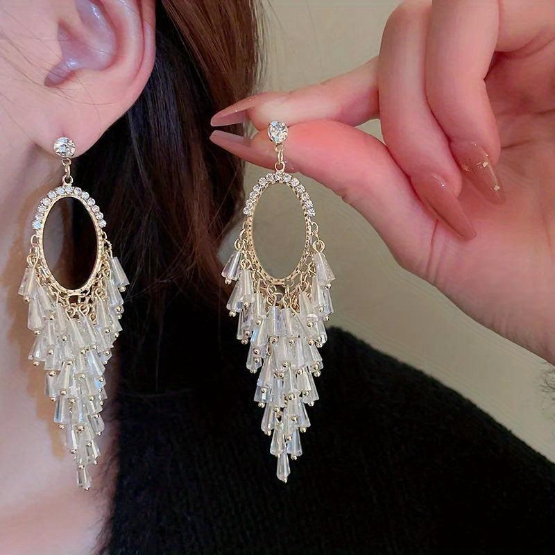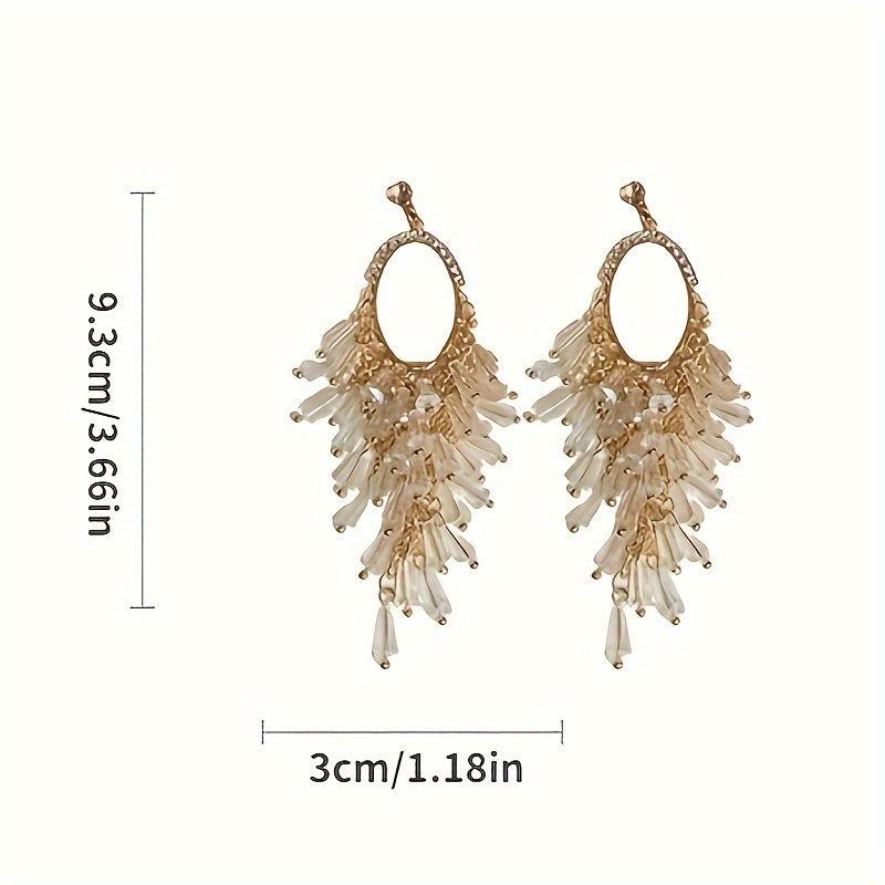 These boho tassel earrings feature silvery alloy with crystal accents, perfect for daily wear and vacations.