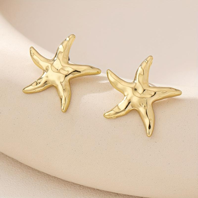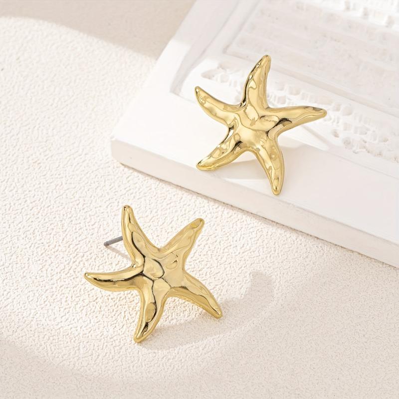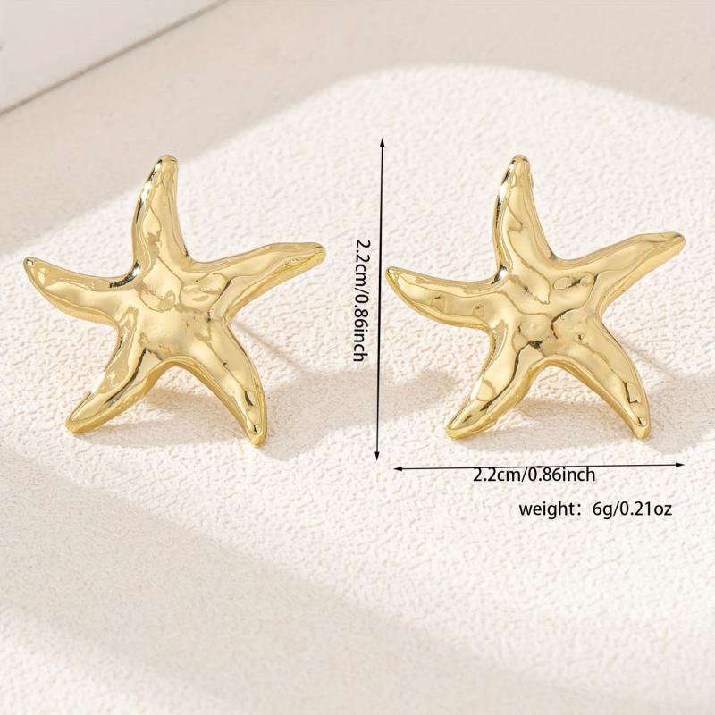 Add a touch of bohemian style with these starfish stud earrings. Crafted with 14K golden plated zinc alloy, they are a fashionable accessory for women all year round.