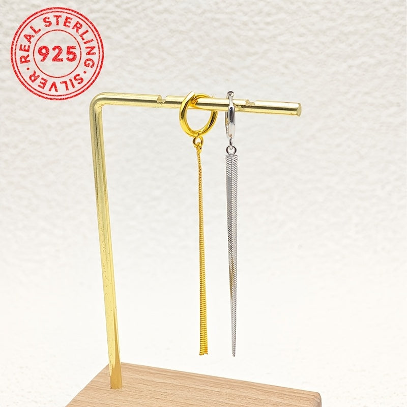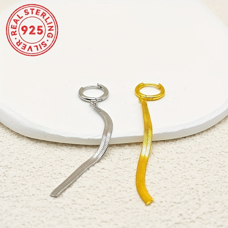 Add a touch of bohemian charm to your outfit with these versatile sterling silver snake chain tassel earrings. Inspired by Middle Eastern style, these earrings are perfect for casual attire.