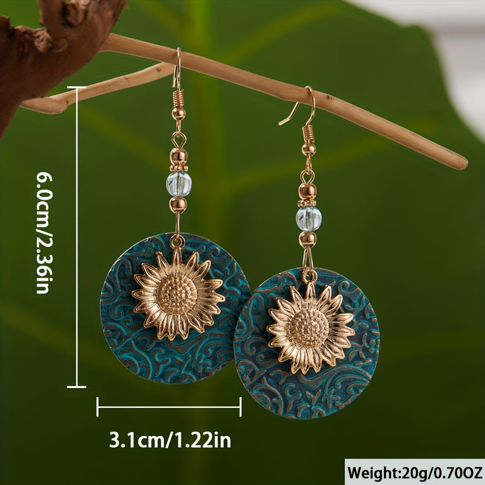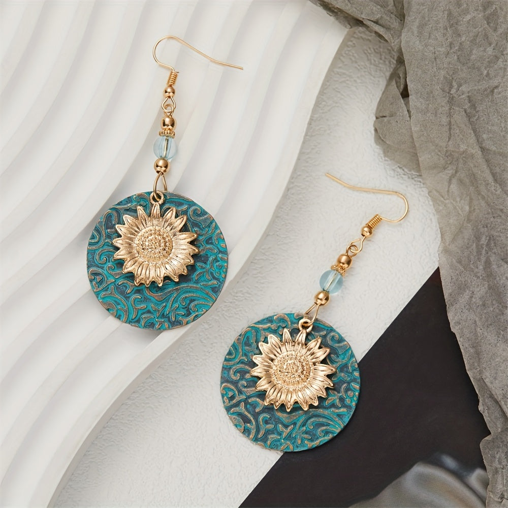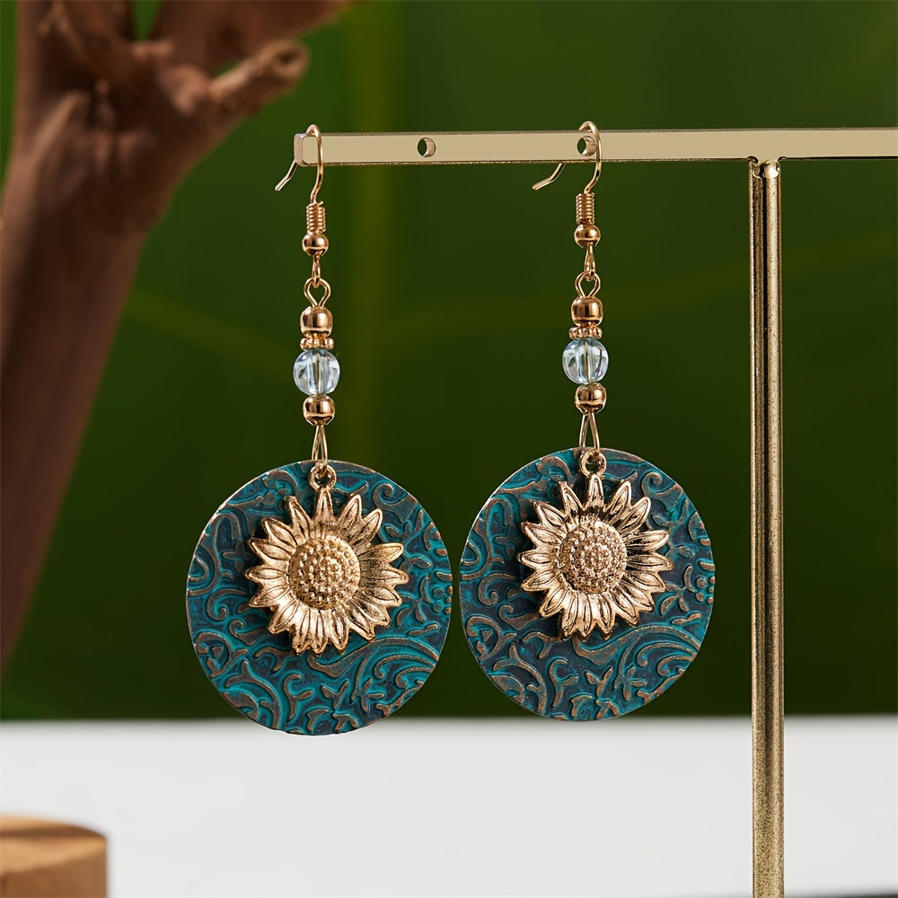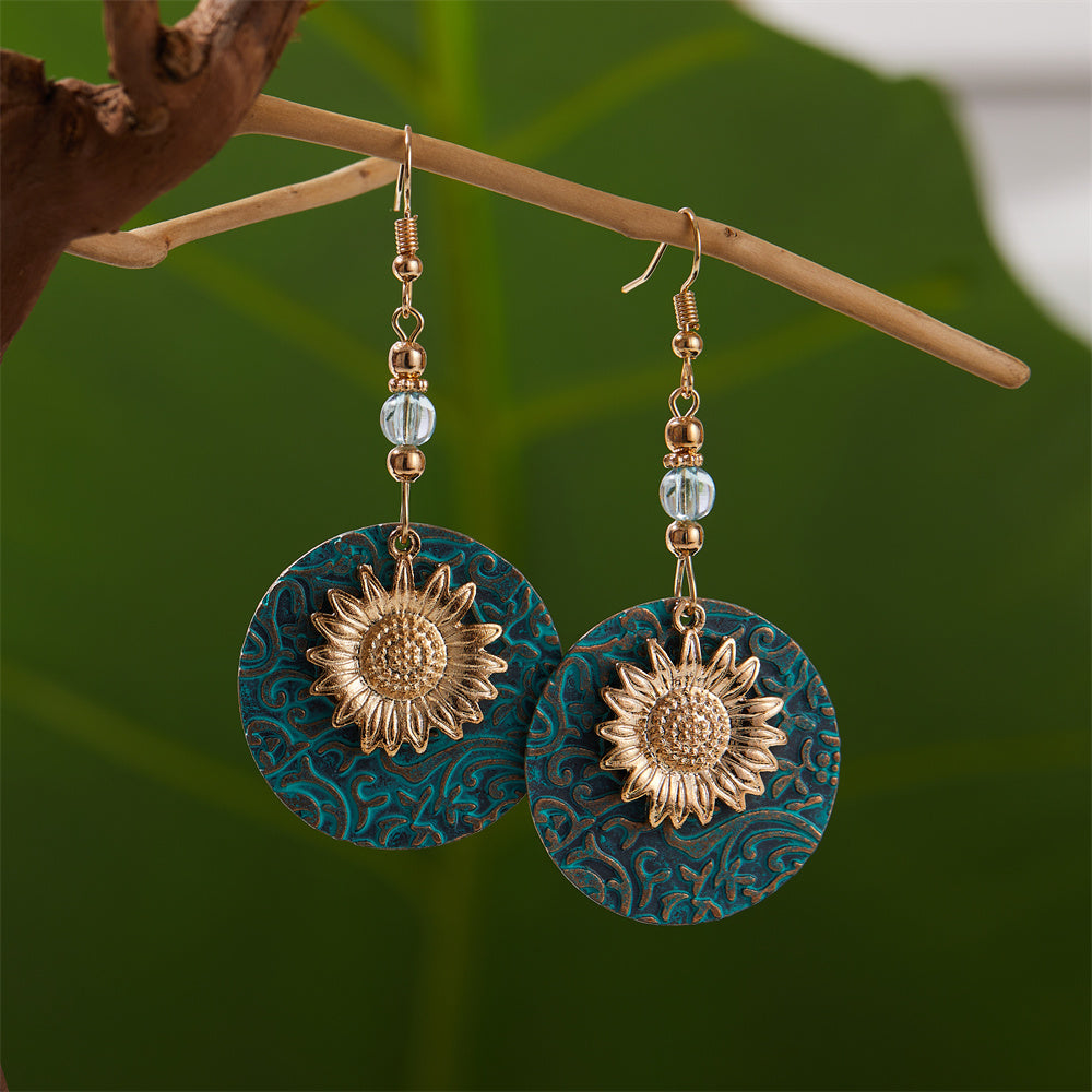 Add a touch of vintage flair to your look with these boho sunflower earrings. Perfect for engagements, weddings, or everyday wear.