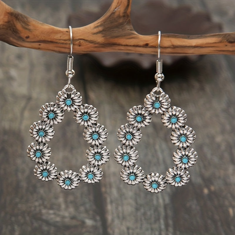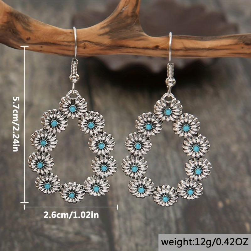 These elegant drop earrings feature a teardrop flower design with gemstone accents, perfect for adding a touch of bohemian style to your look. Ideal for parties or as a gift for a loved one.
