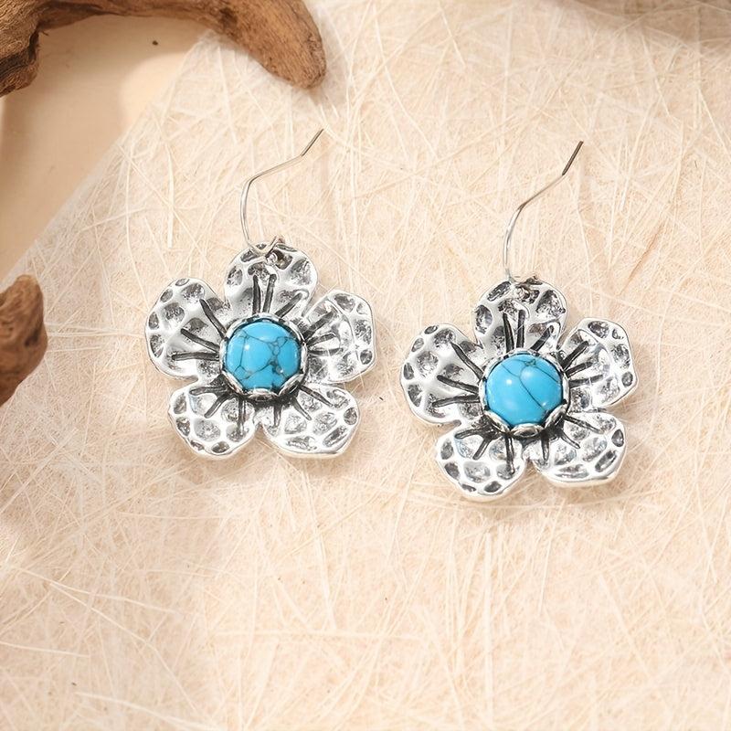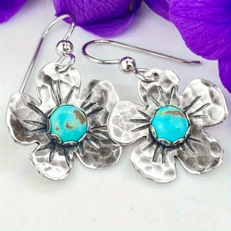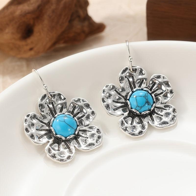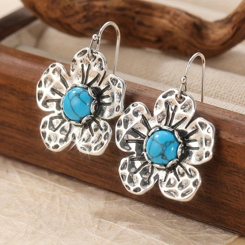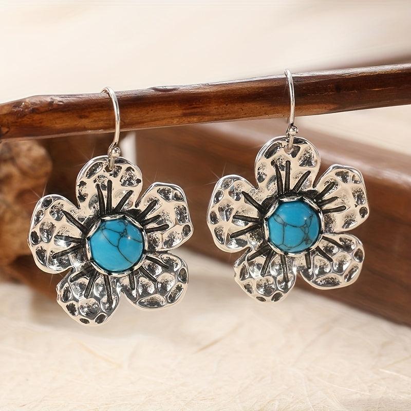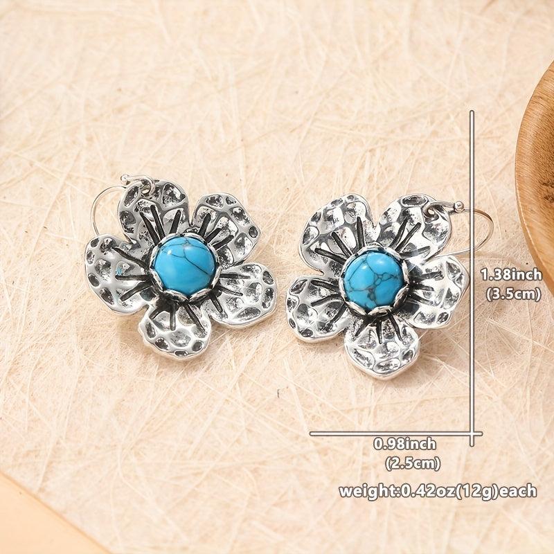 These boho dangle earrings feature synthetic turquoise stones with a vintage inspired design. Add a statement piece to your outfit with these retro and hippie style earrings.