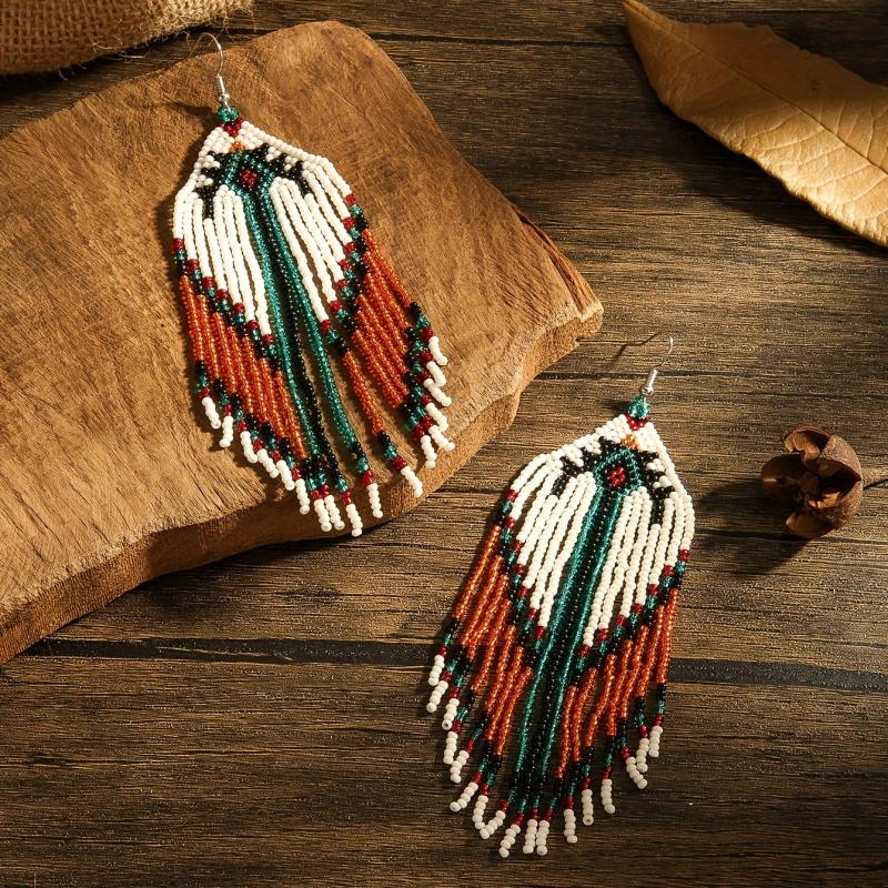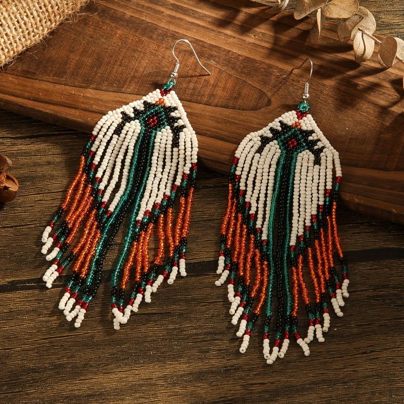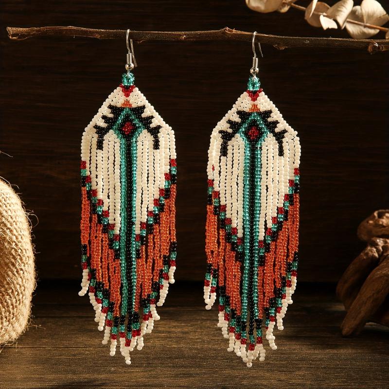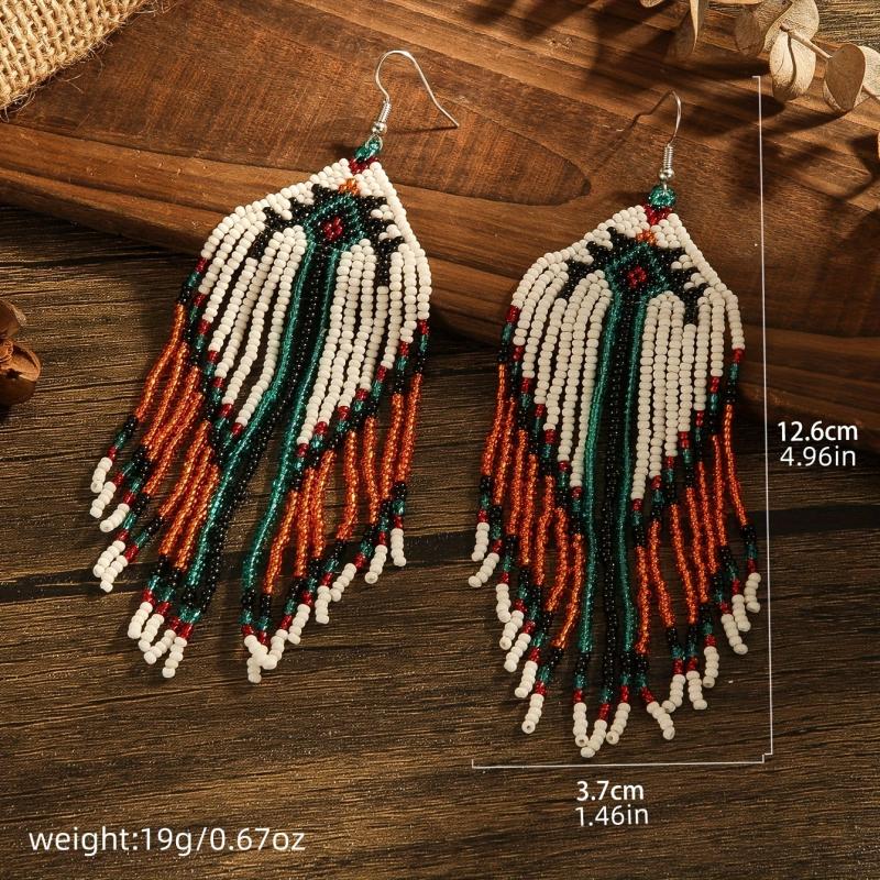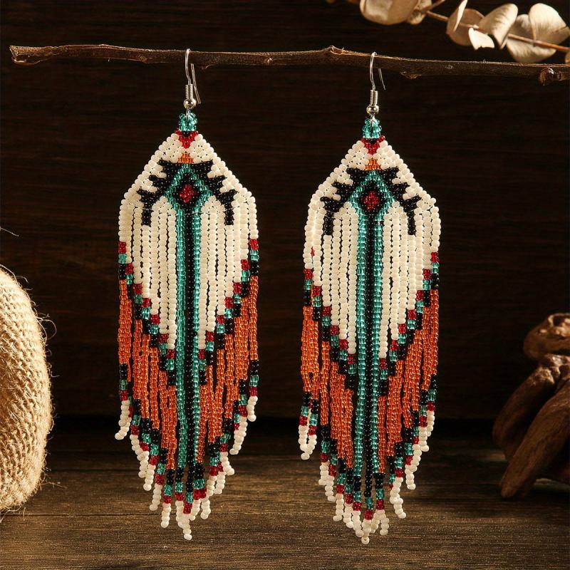 Add a touch of bohemian flair to your look with these braided beaded tassel earrings that exude vintage charm.