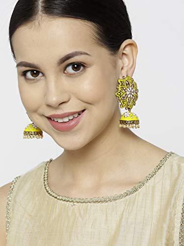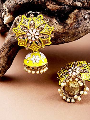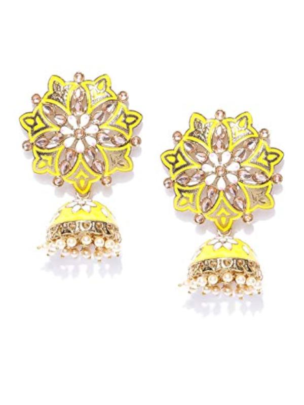 Elegant brass jhumka earrings with pearl detailing, perfect for women and girls.