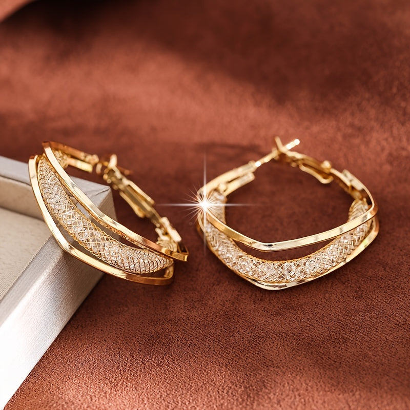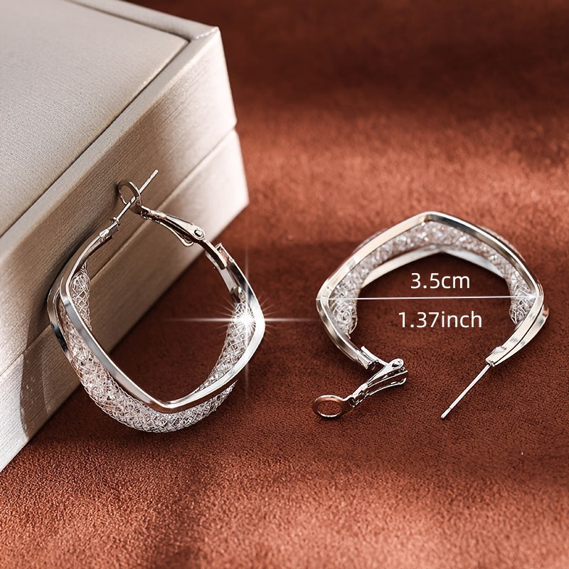 Add a pop of color and sparkle to your outfit with these bright hoop earrings. Made of hypoallergenic material, these mesh twisted round earrings are perfect for girls with sensitive ears.