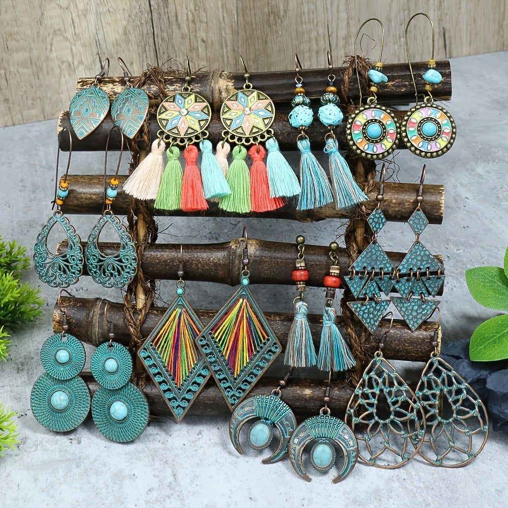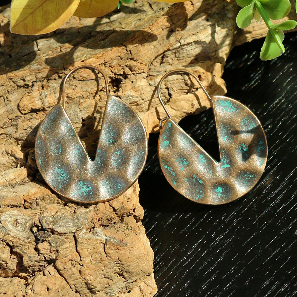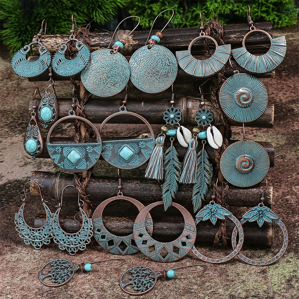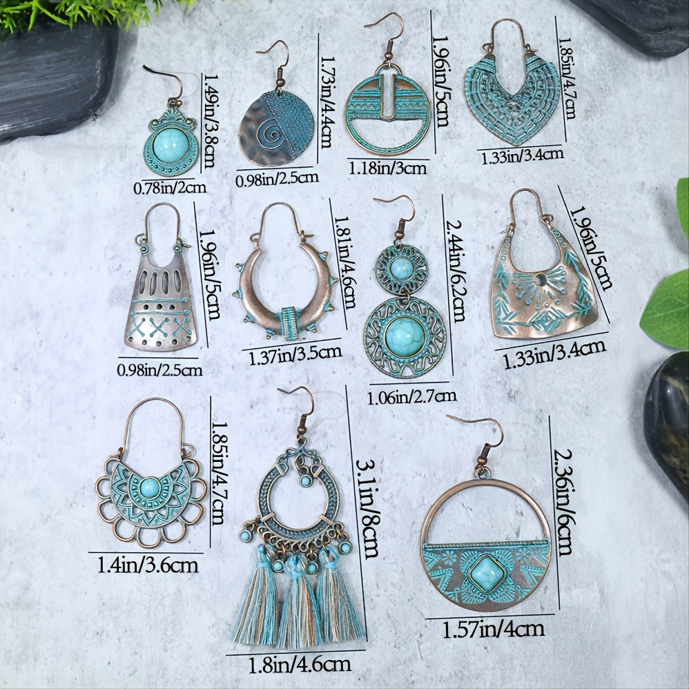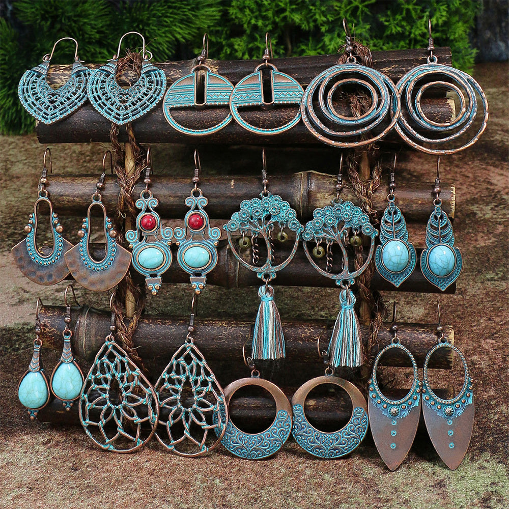 Ethnic style pendant set with turquoise embellishment and U-shaped ear hook hanging for a retro look.