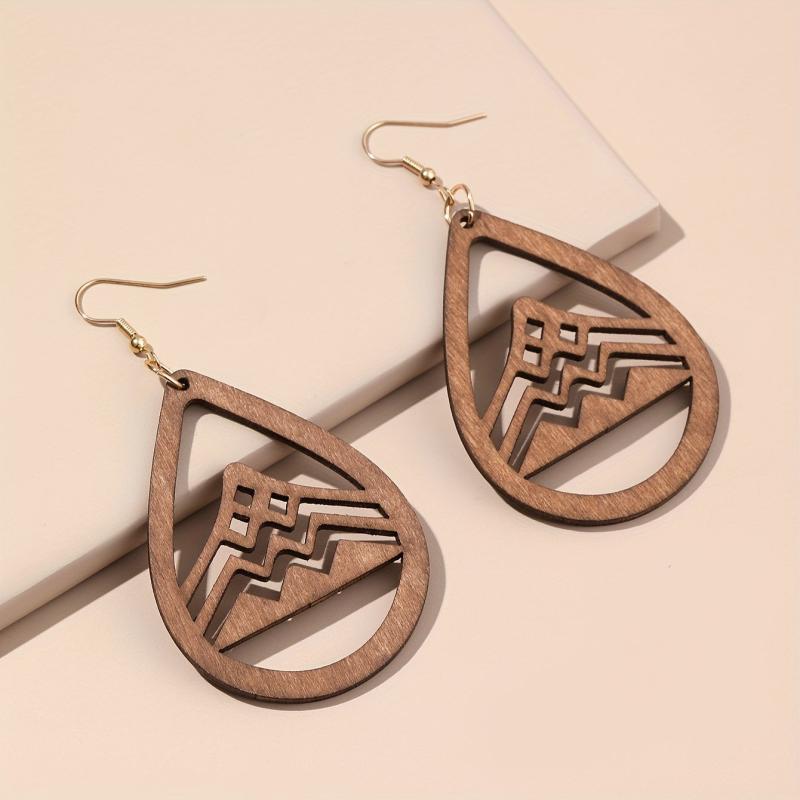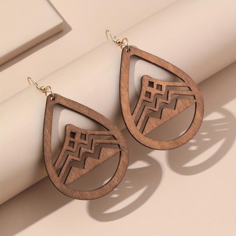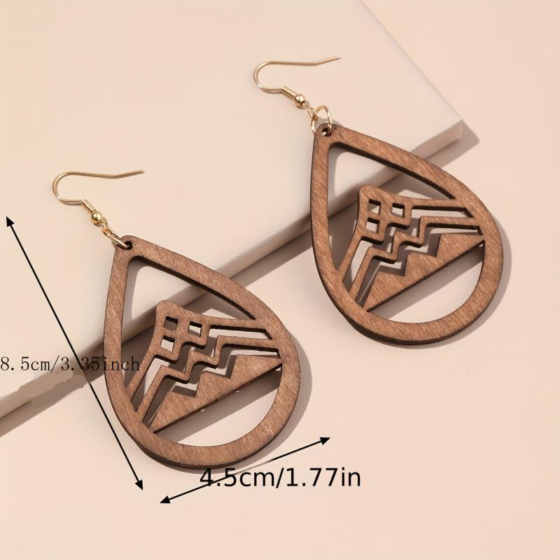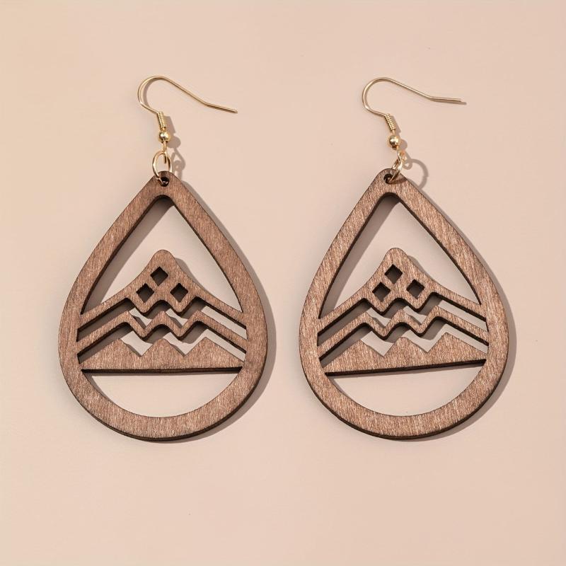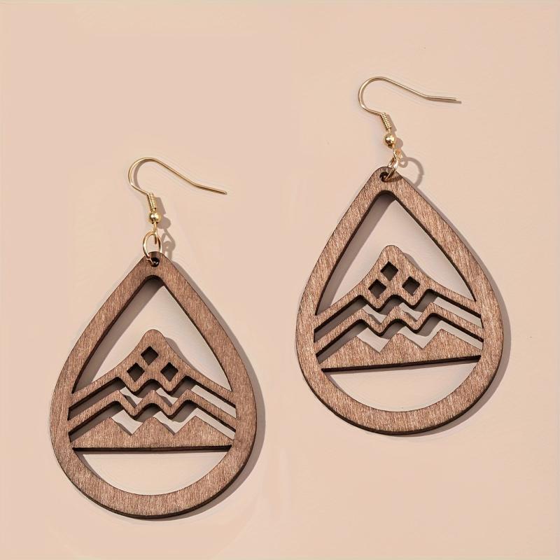These retro style earrings feature a droplet shape with a hollow mountain pattern design. Perfect for fall and winter wear.