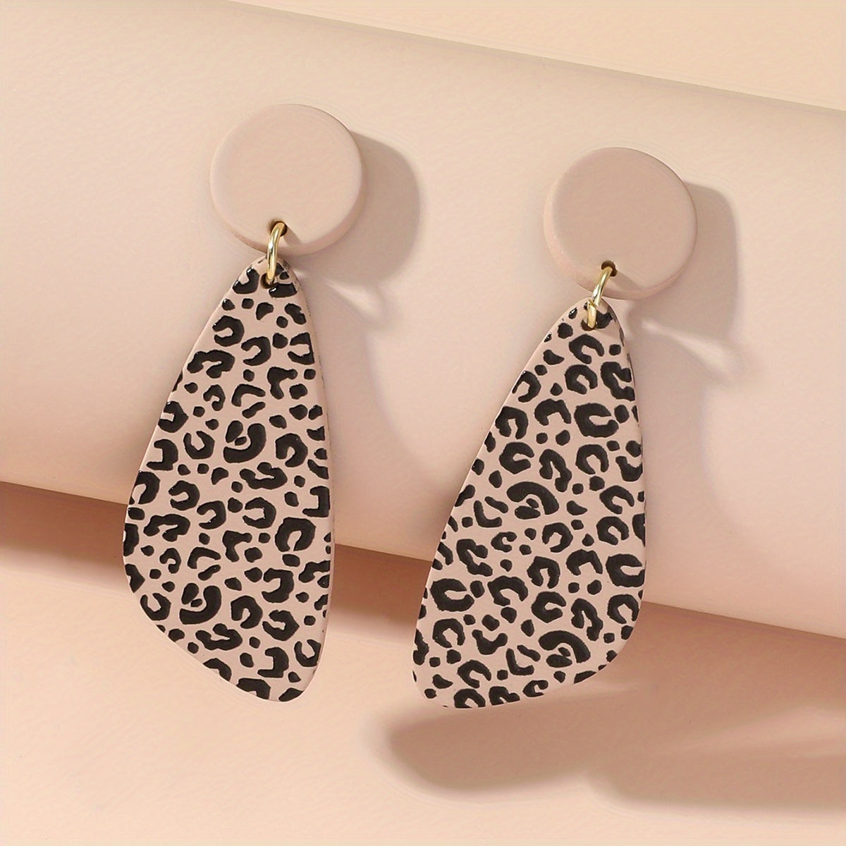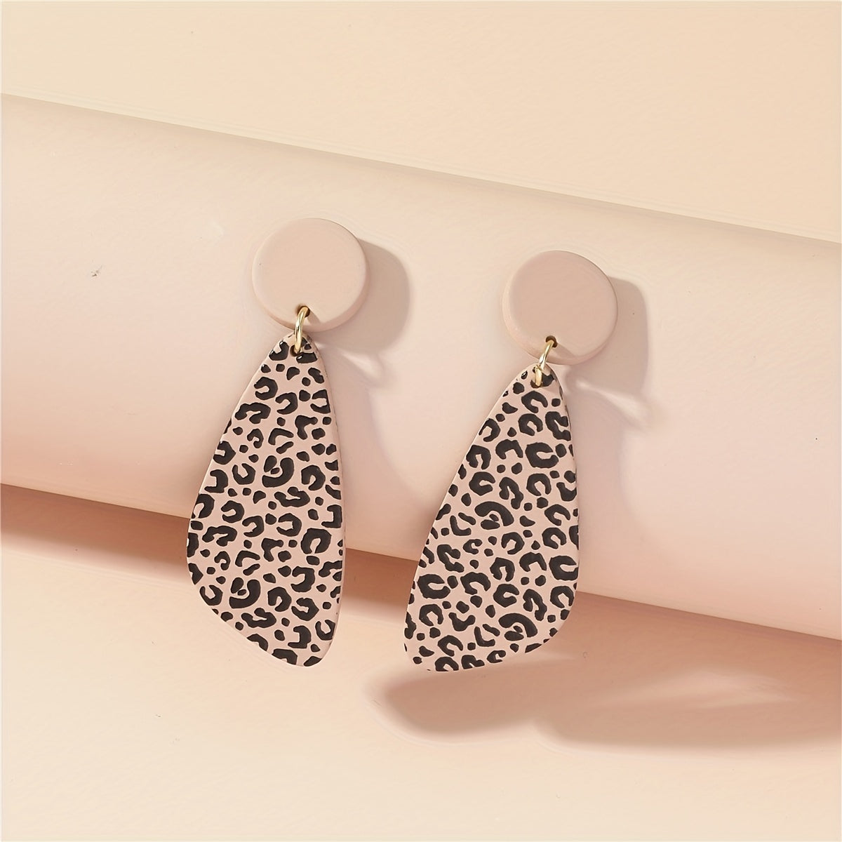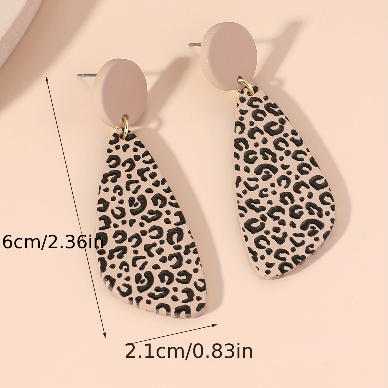 Add a touch of retro sexy style with these brown dangle earrings featuring a leopard pattern. Made of acrylic, these earrings are a perfect gift for females.