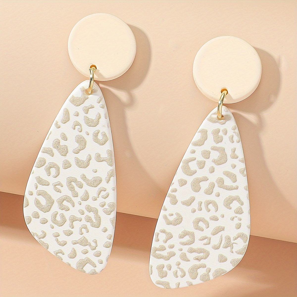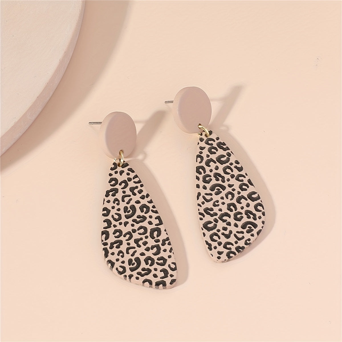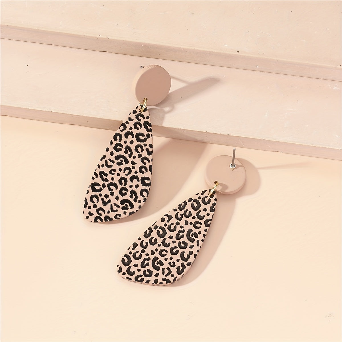 Add a touch of retro sexy style with these brown dangle earrings featuring a leopard pattern. Made of acrylic, these earrings are a perfect gift for females.