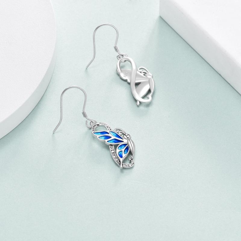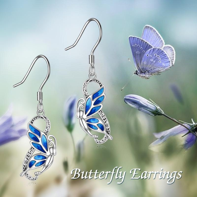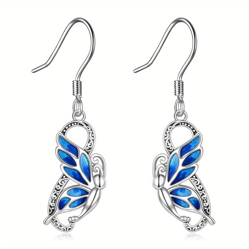 Elegant and intricate butterfly filigree dangle drop earrings in sterling silver. Perfect gift for women, wife, and mothers.