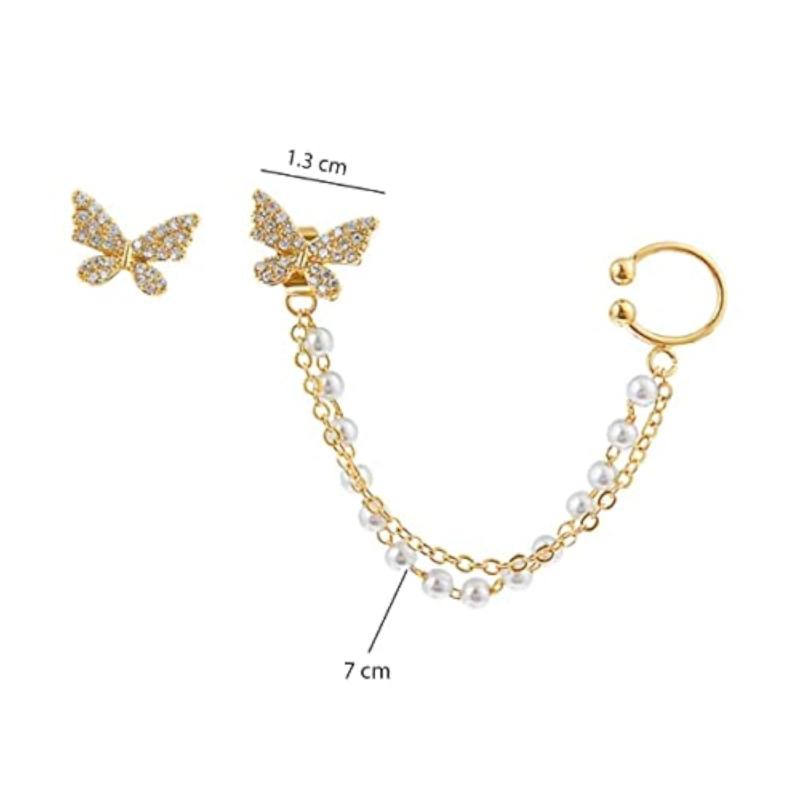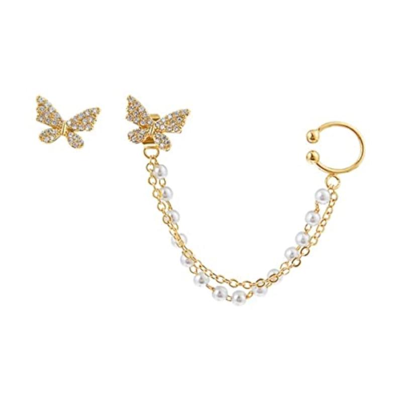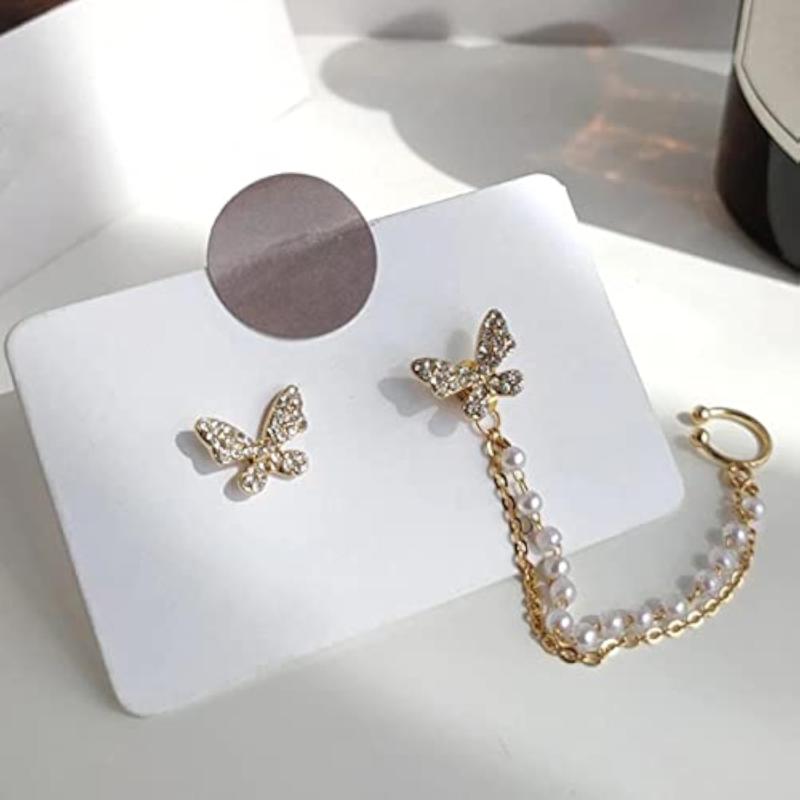 Add a touch of elegance to your outfit with these stylish butterfly pearl mismatch earrings. The plated finish adds a modern twist to a classic design.