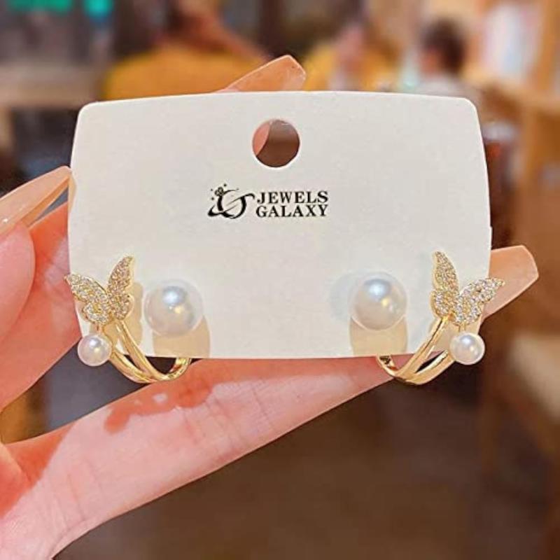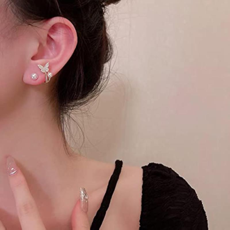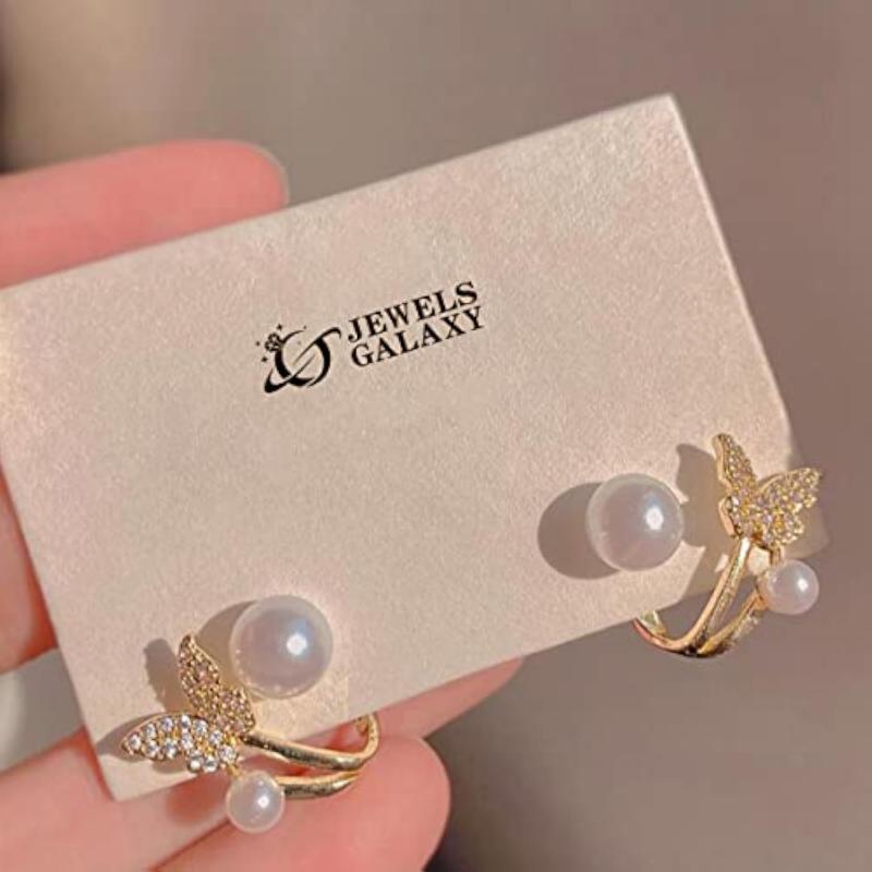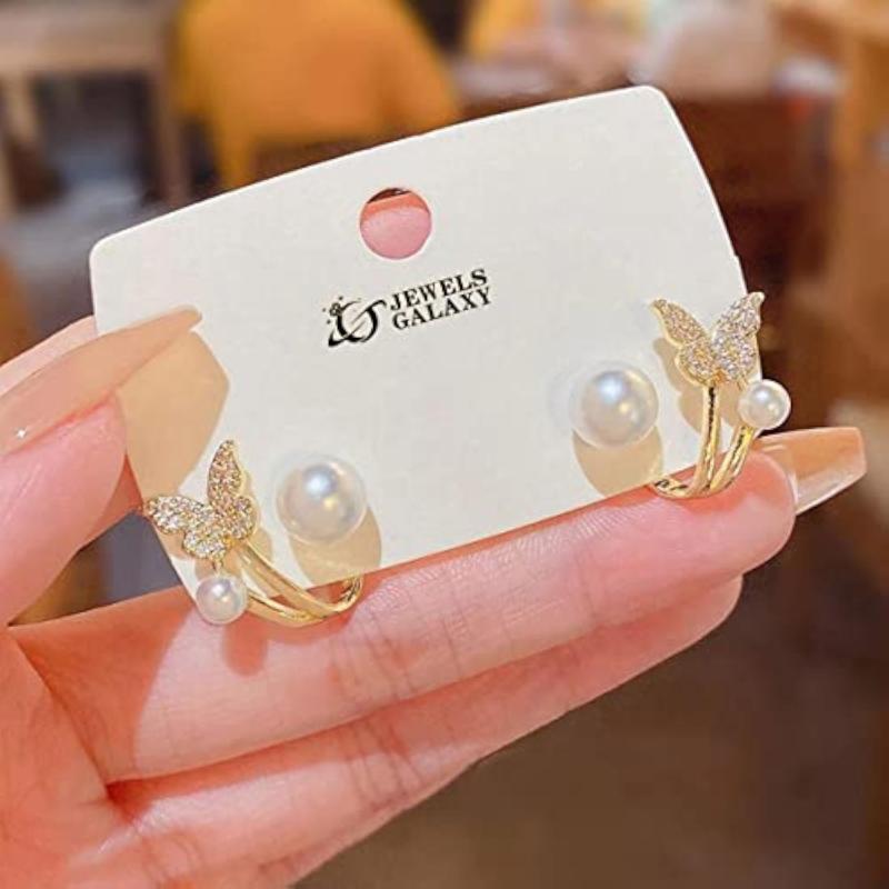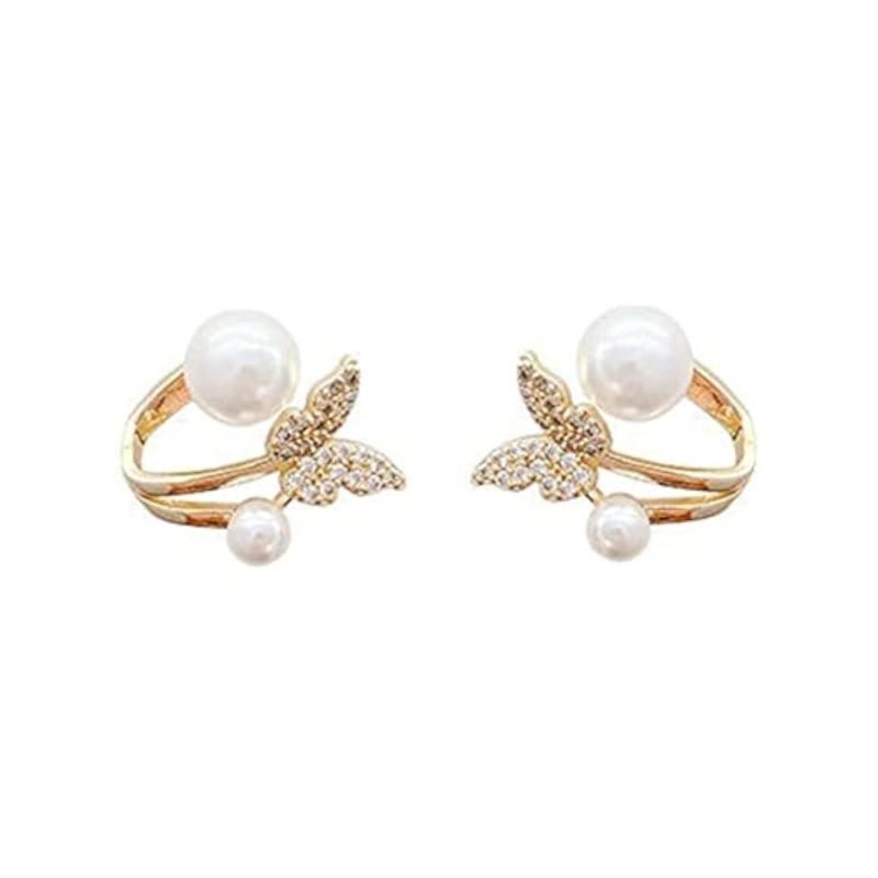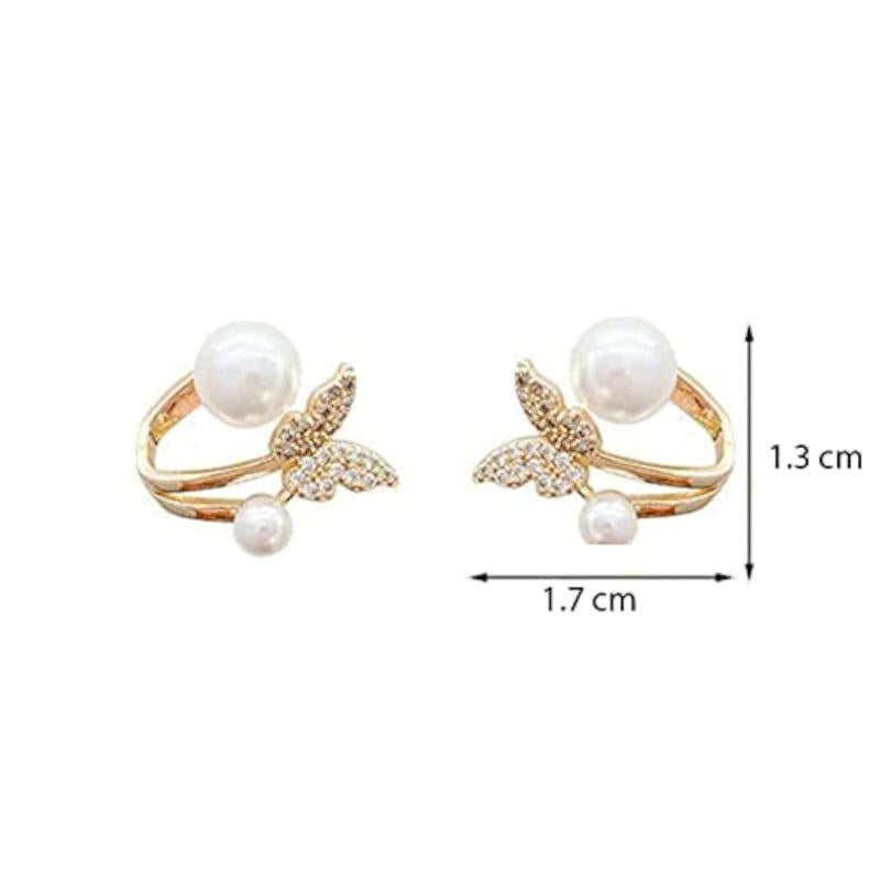 Add a touch of elegance to your outfit with these fashionable butterfly pearl stud earrings. The perfect accessory for any occasion.