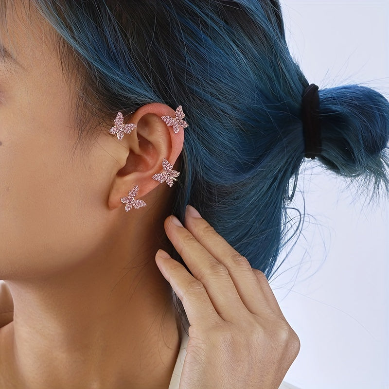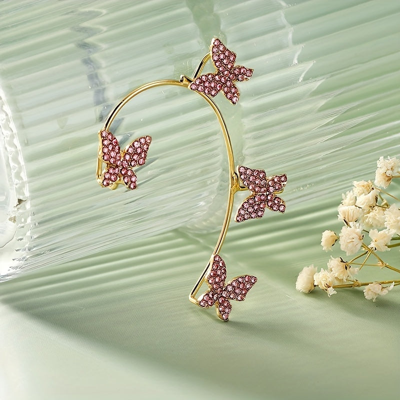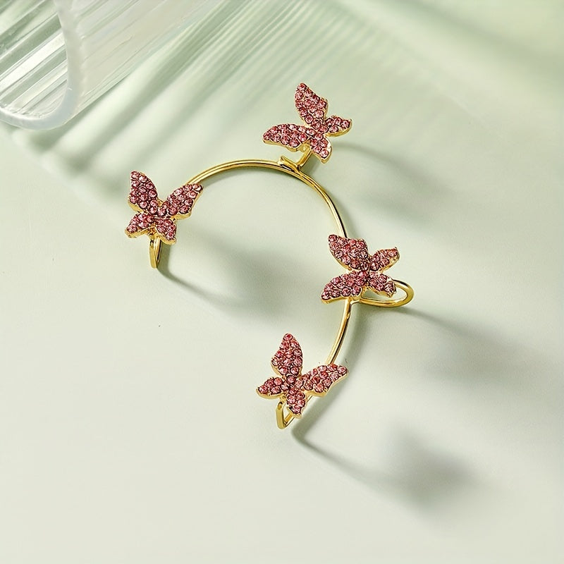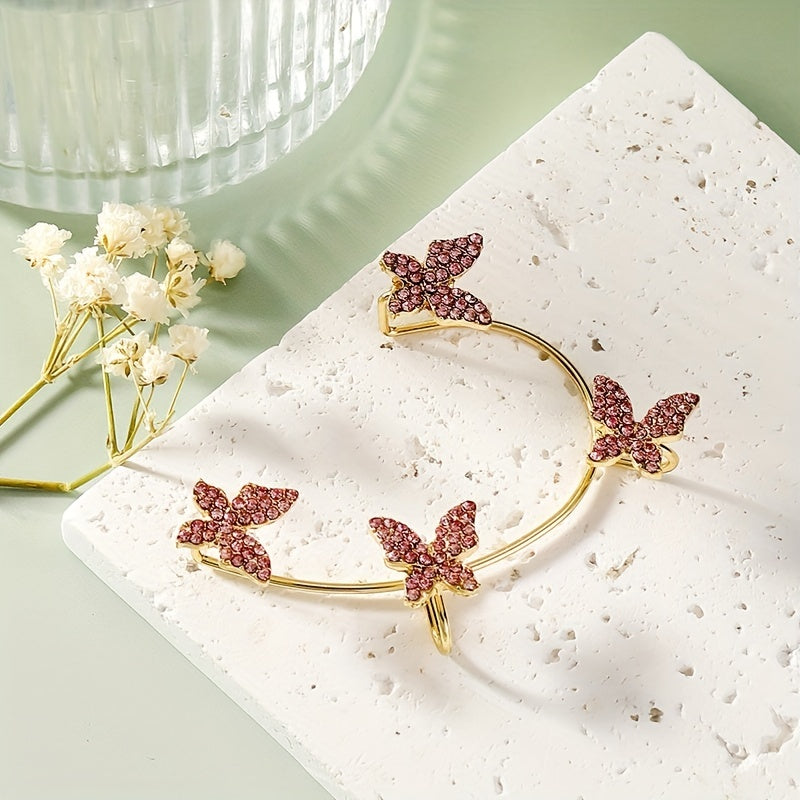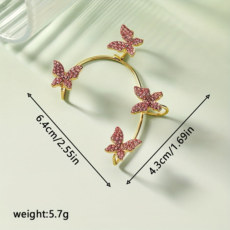 Stunning ear wrap featuring butterfly and rose red rhinestone, made of zinc alloy with 14K plating. Perfect for weddings or special occasions.