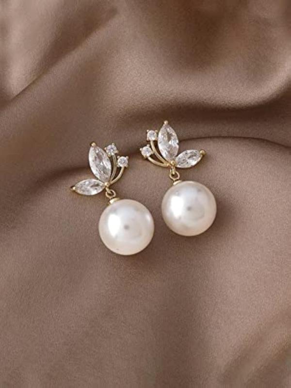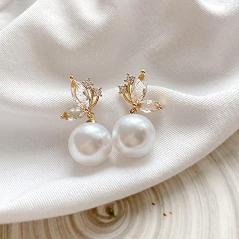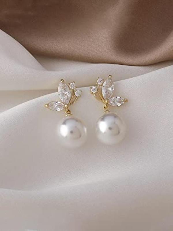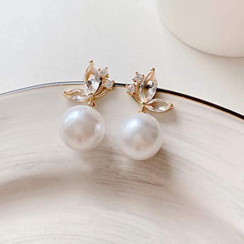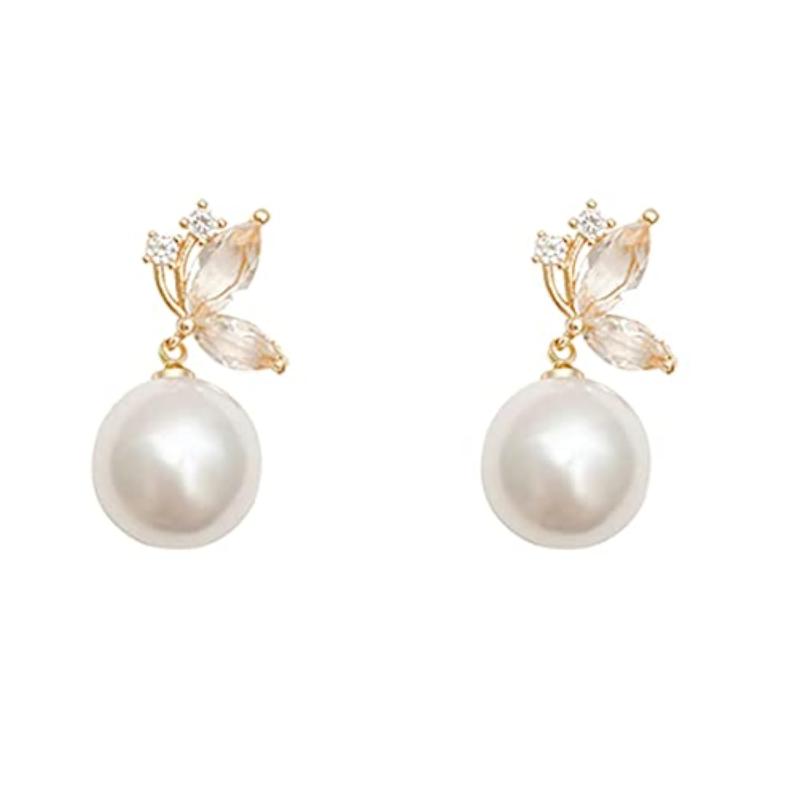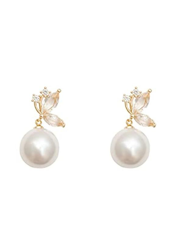 These elegant earrings feature butterfly-shaped studs with a hanging pearl drop for a touch of sophistication and style.
