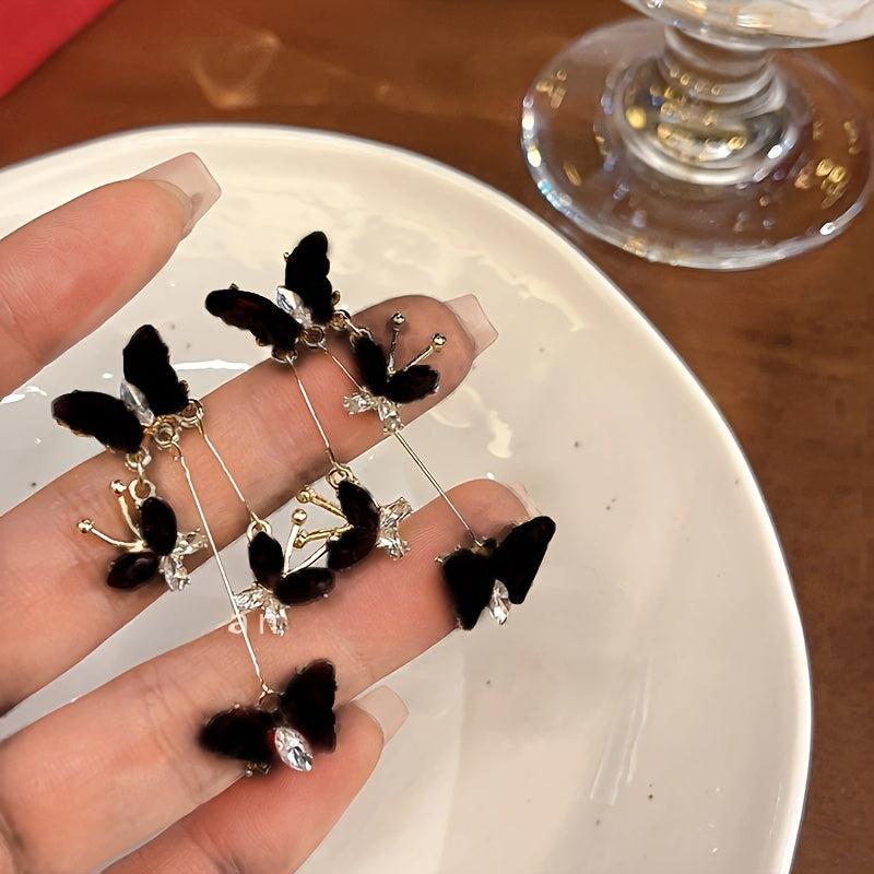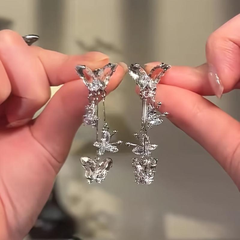Add a touch of elegance with these rhinestone butterfly tassel earrings. They are ideal for parties, dates, and special occasions.
