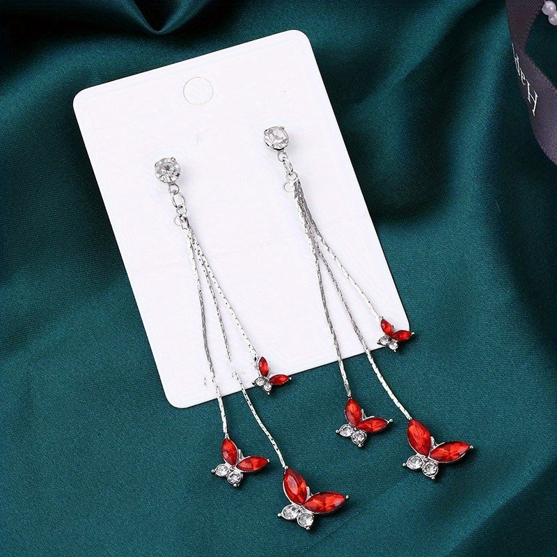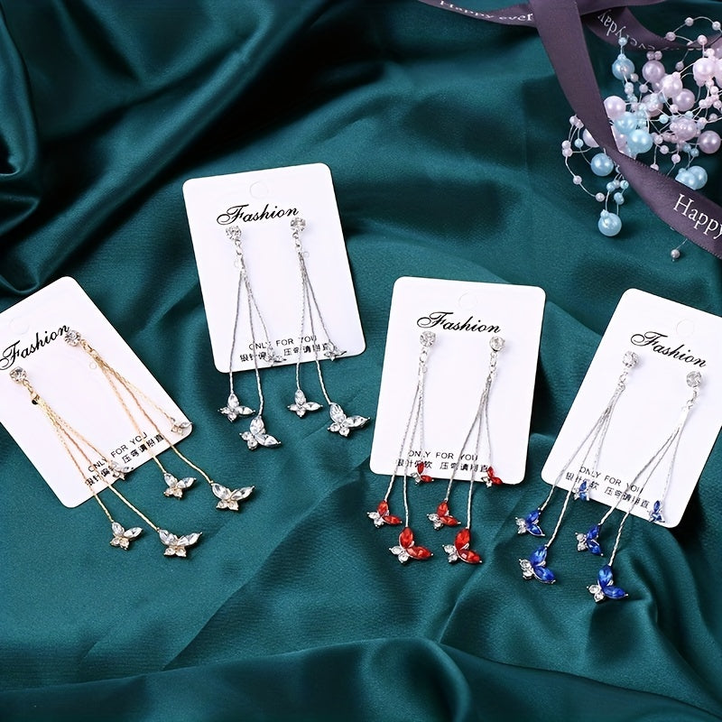 These stylish dangle earrings feature butterfly design with zircon decor, perfect for weddings and special occasions.