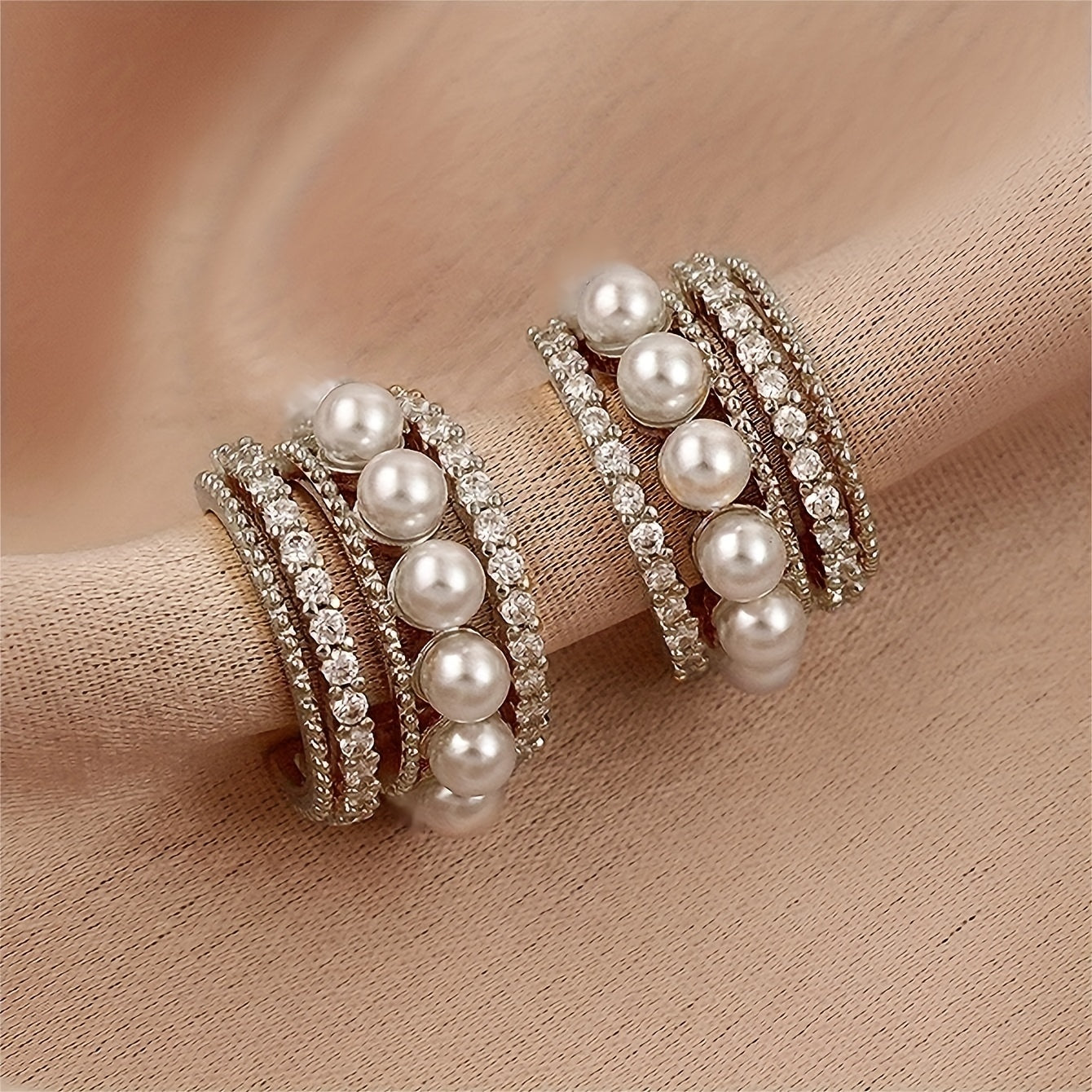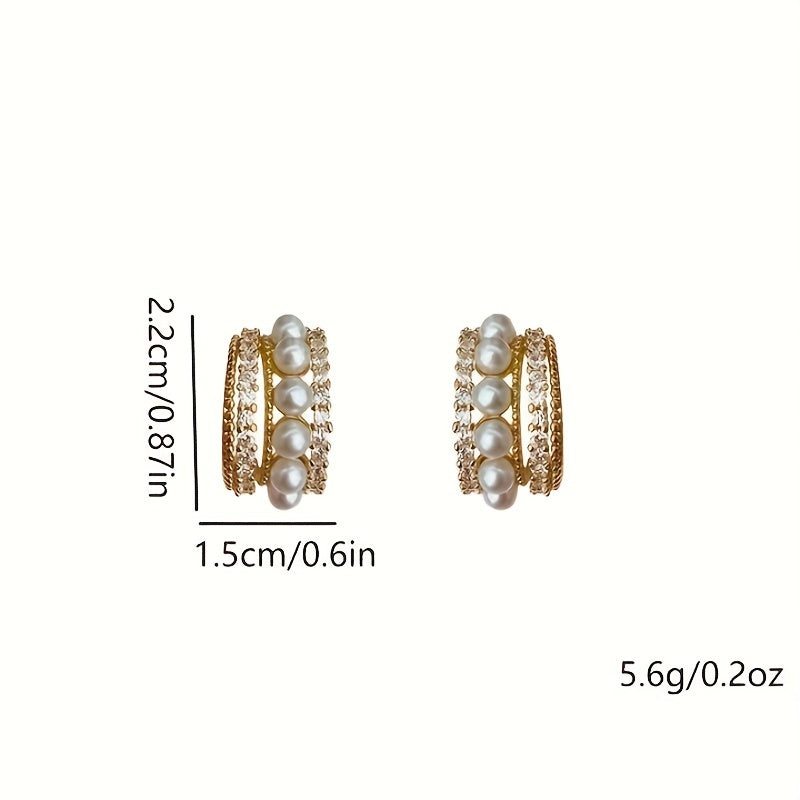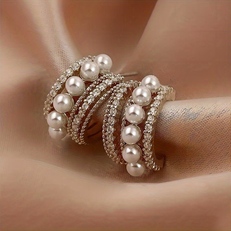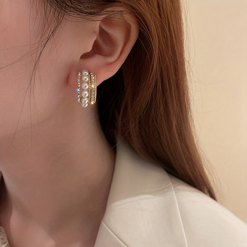 C Shape Hoop Earrings with Rhinestone Faux Pearl - Minimalist Style Jewelry