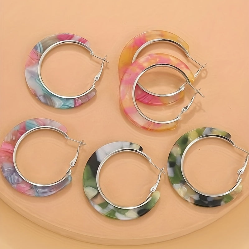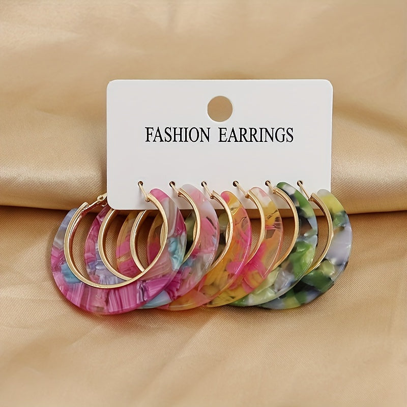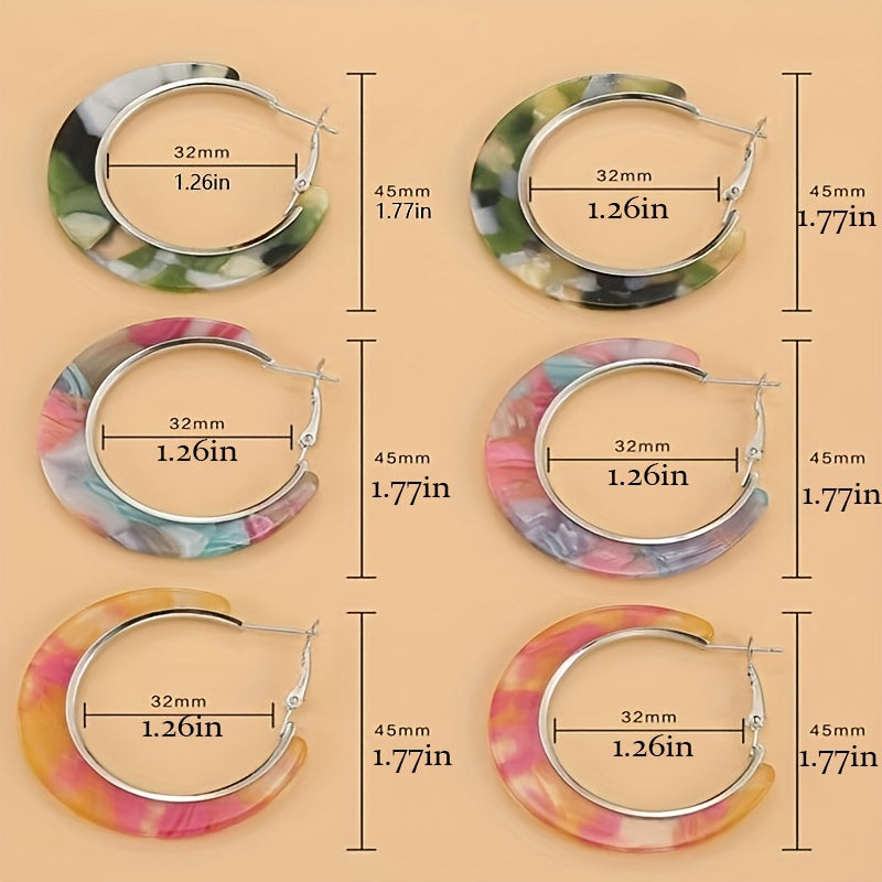 This set includes 3 pairs of round hoop earrings with a C-shaped design. Perfect for a trendy and stylish look.