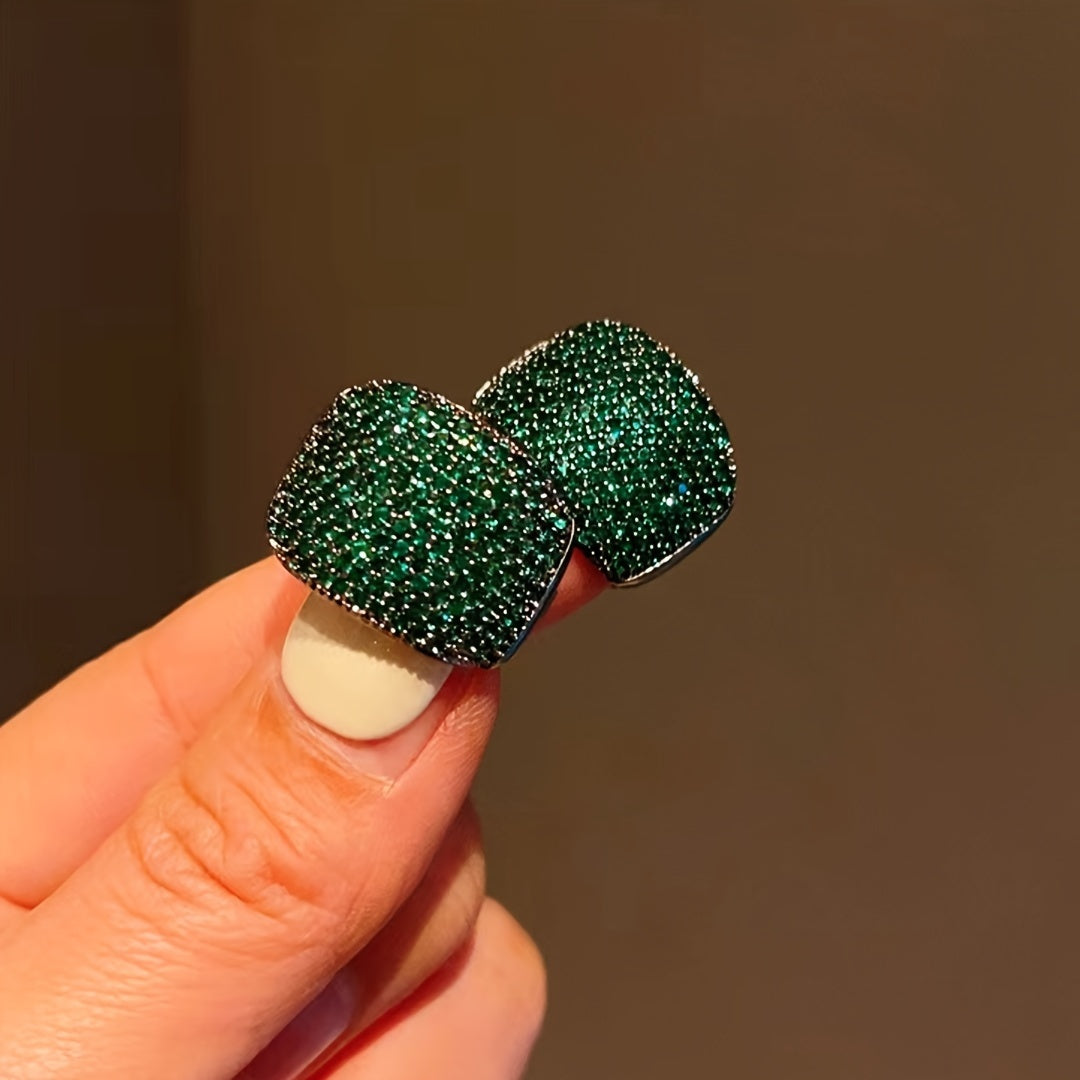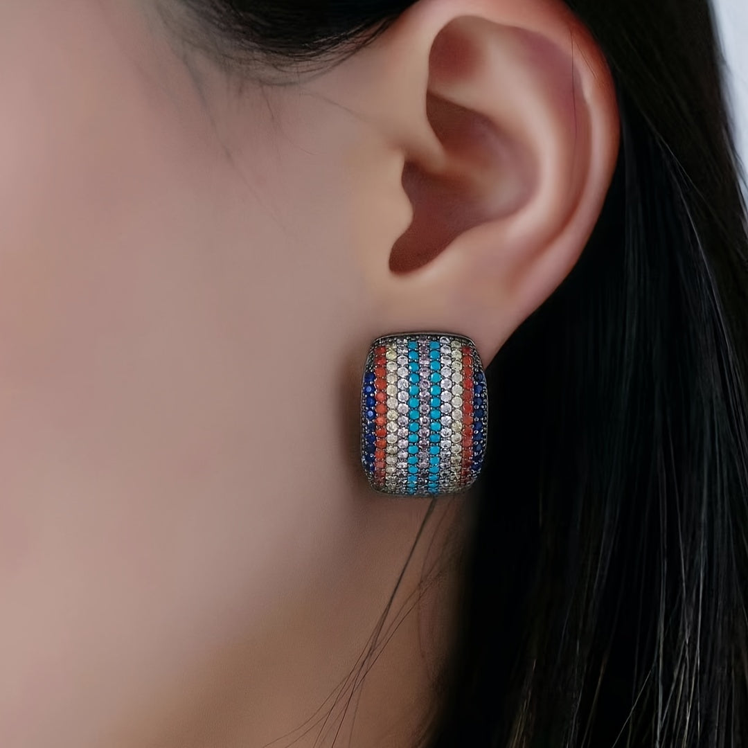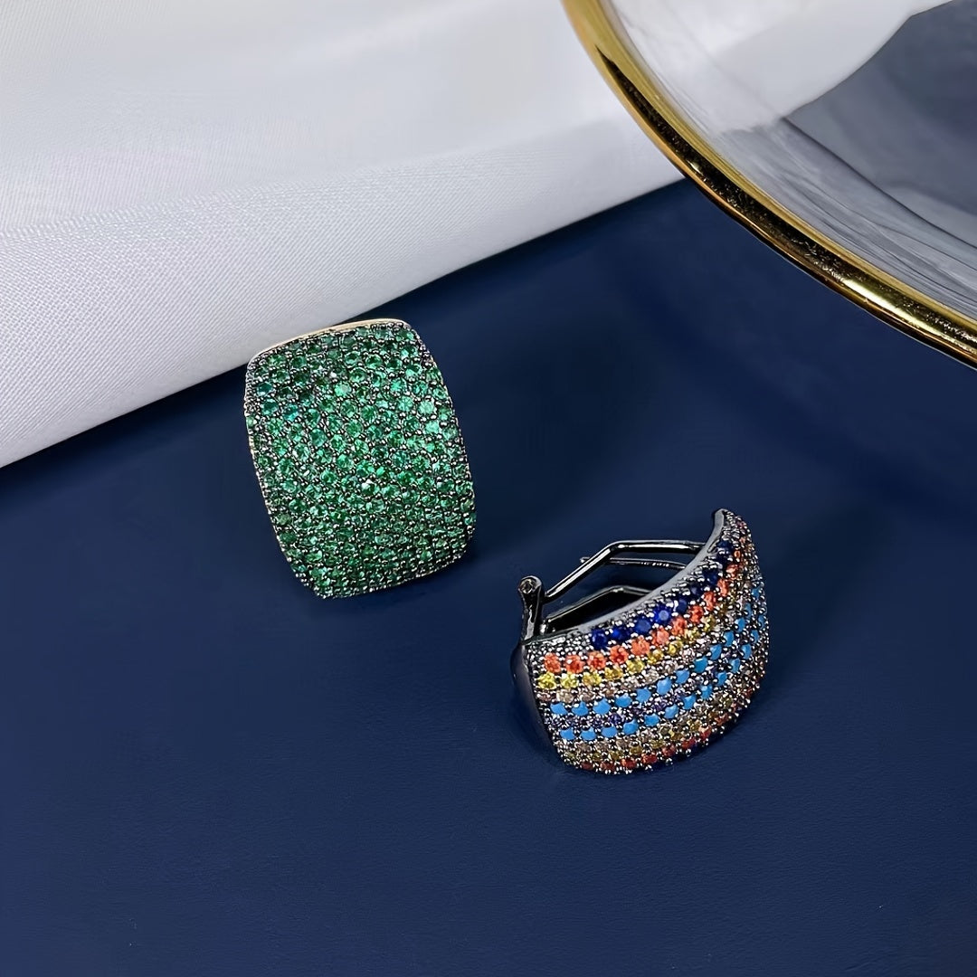 These stunning C shaped hoop earrings feature sparkling zirconia and 925 silvery posts. Perfect for parties, Christmas or special occasions. The colored zirconia rectangular accents add a touch of elegance to your outfit.