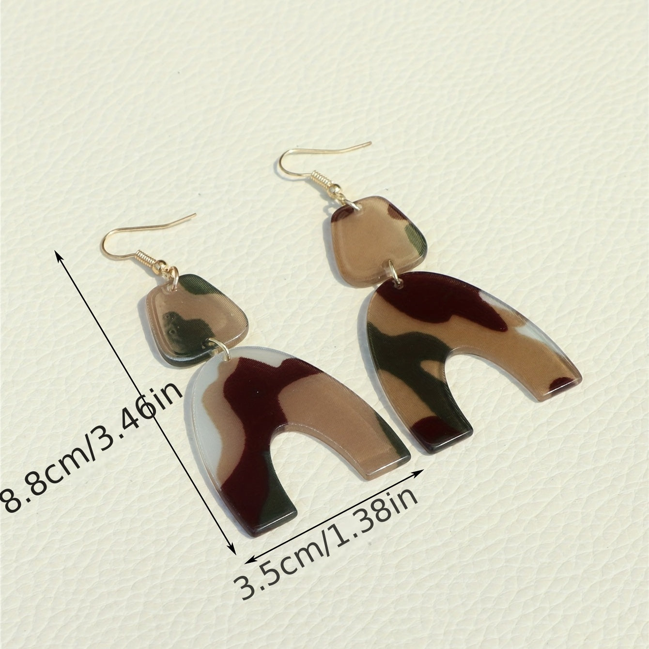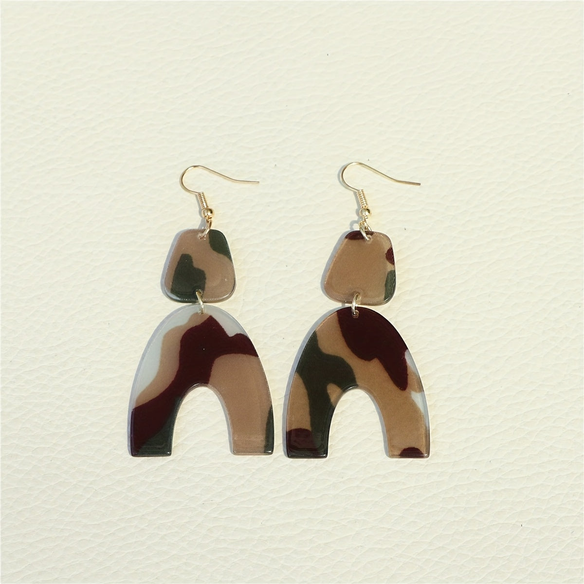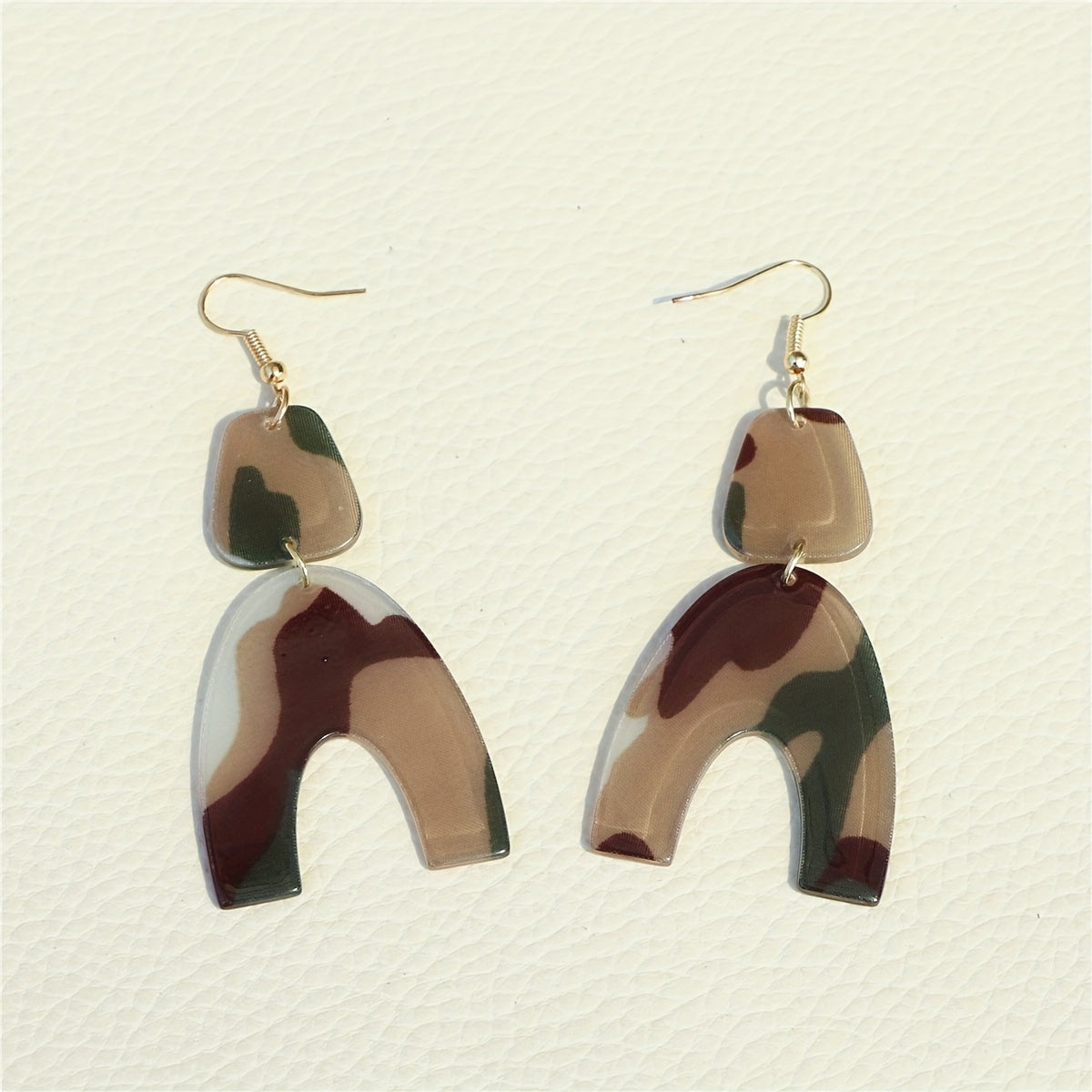 These U shape dangle earrings feature a classic camouflage pattern, making them a stylish accessory. They are made of acrylic and are a great gift for women.