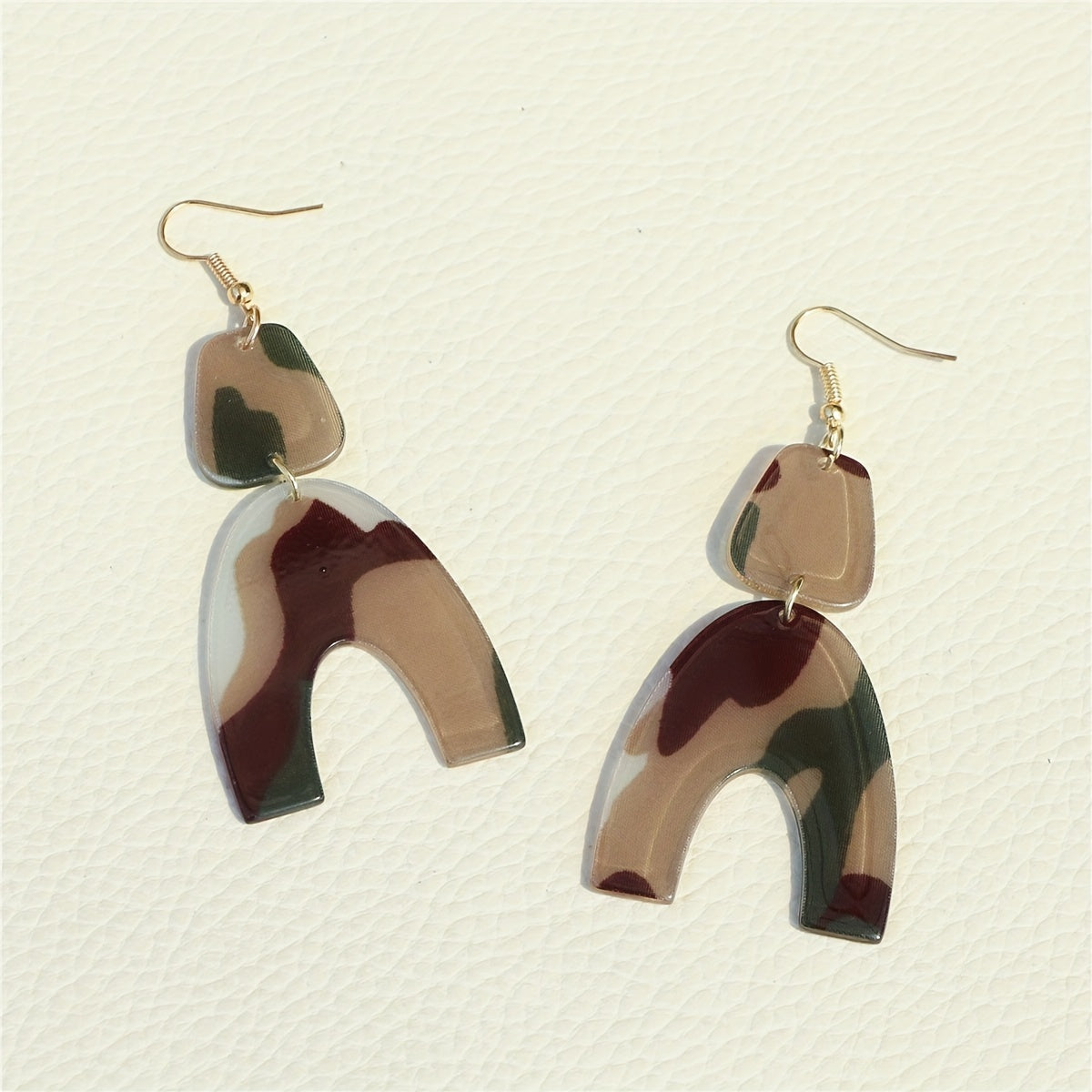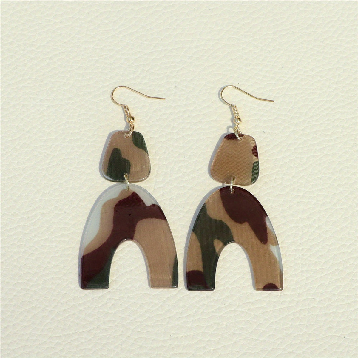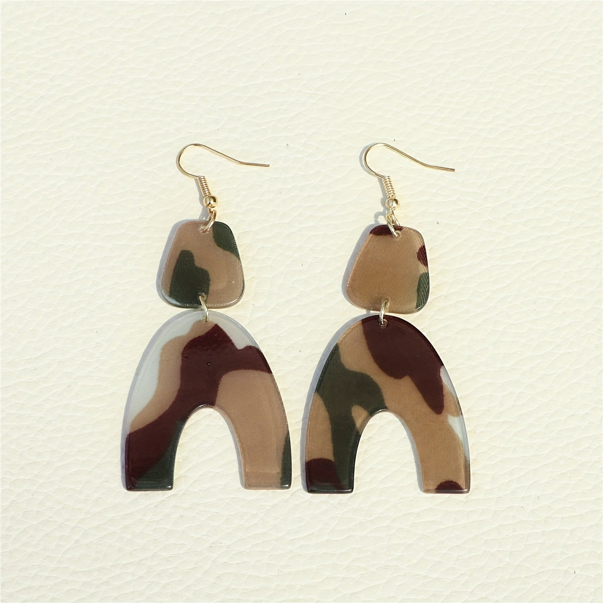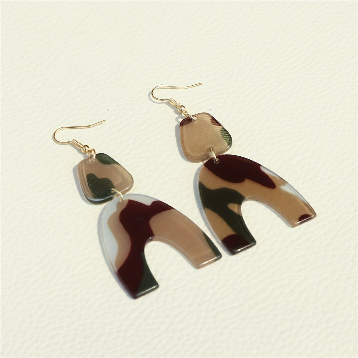 These U shape dangle earrings feature a classic camouflage pattern, making them a stylish accessory. They are made of acrylic and are a great gift for women.