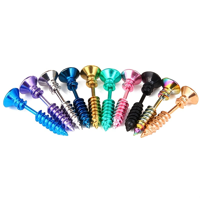 Get into the Halloween spirit with these stylish carbon steel screw stud earrings. Perfect for adding a touch of spooky fun to your look.