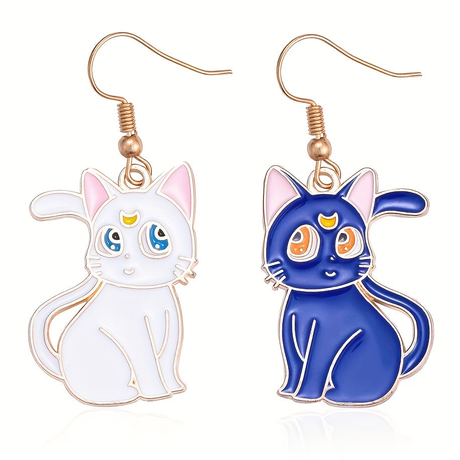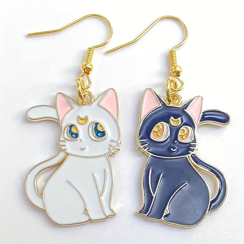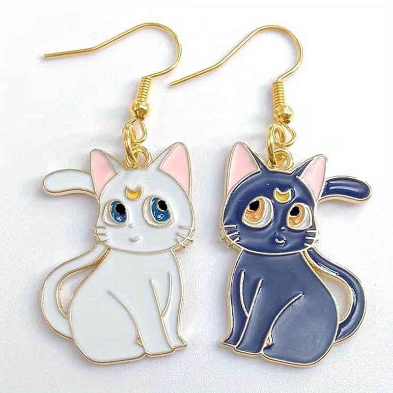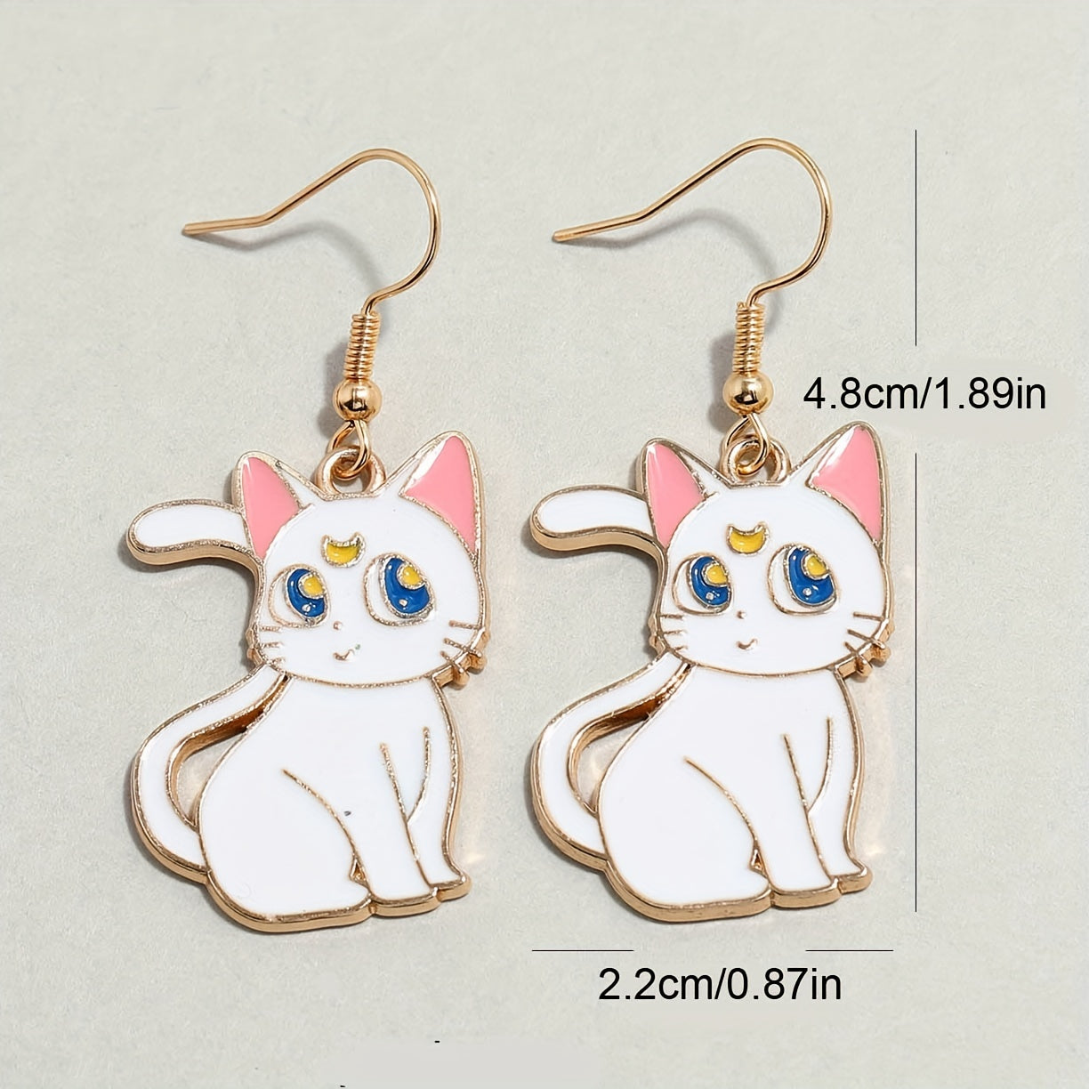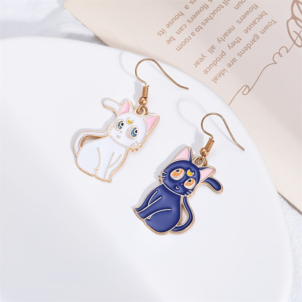 Adorable Cartoon Cat Dangle Earrings perfect for women and girls. These cute animal-themed drop earrings are a lovely addition to any outfit.