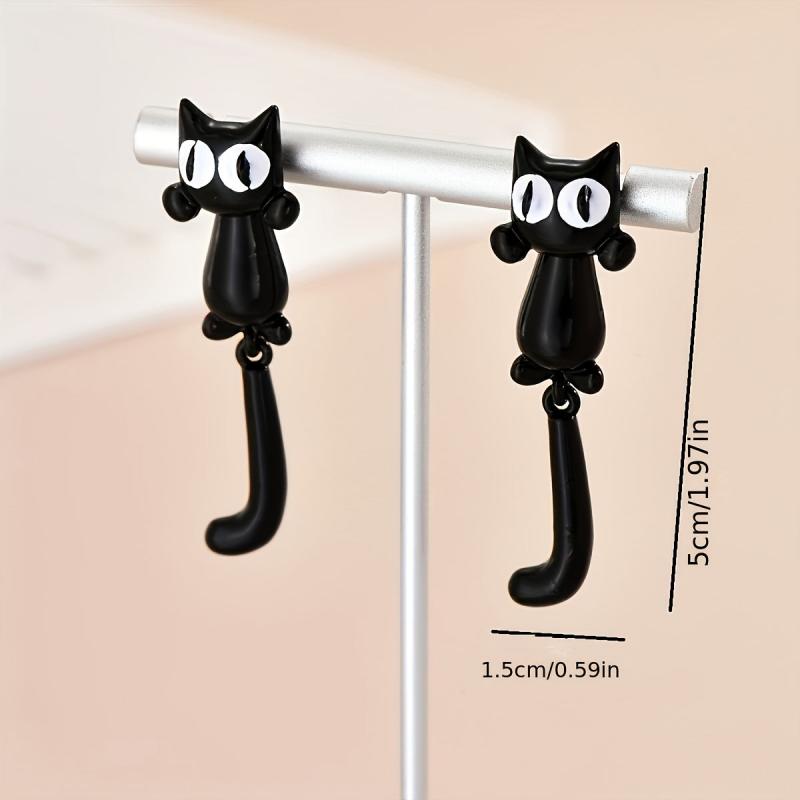 These charming cartoon cat dangle earrings are made of zinc alloy, perfect for daily wear. They make a delightful gift for women who appreciate delicate jewelry with a bohemian touch.