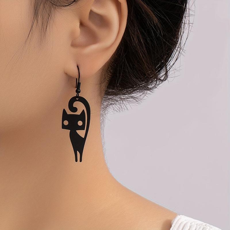 These whimsical cartoon cat dangle earrings are perfect for adding a touch of fun to your casual outfits. They make a great gift for cat lovers and are delicate enough for everyday wear.