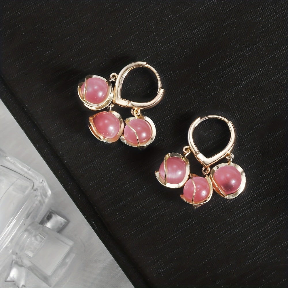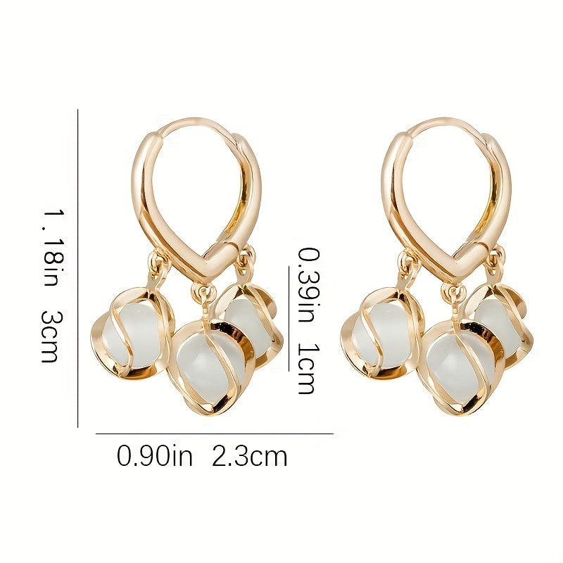 These round bead cat eye stone earrings are a fashionable accessory for women and girls. The drop dangle design adds an elegant touch to any outfit.