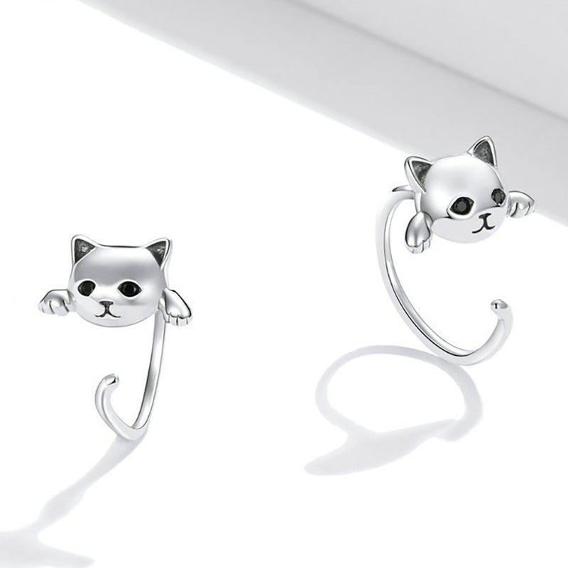 Cat Half Hoop Earrings 925 Sterling Silver Wrap Cuffs