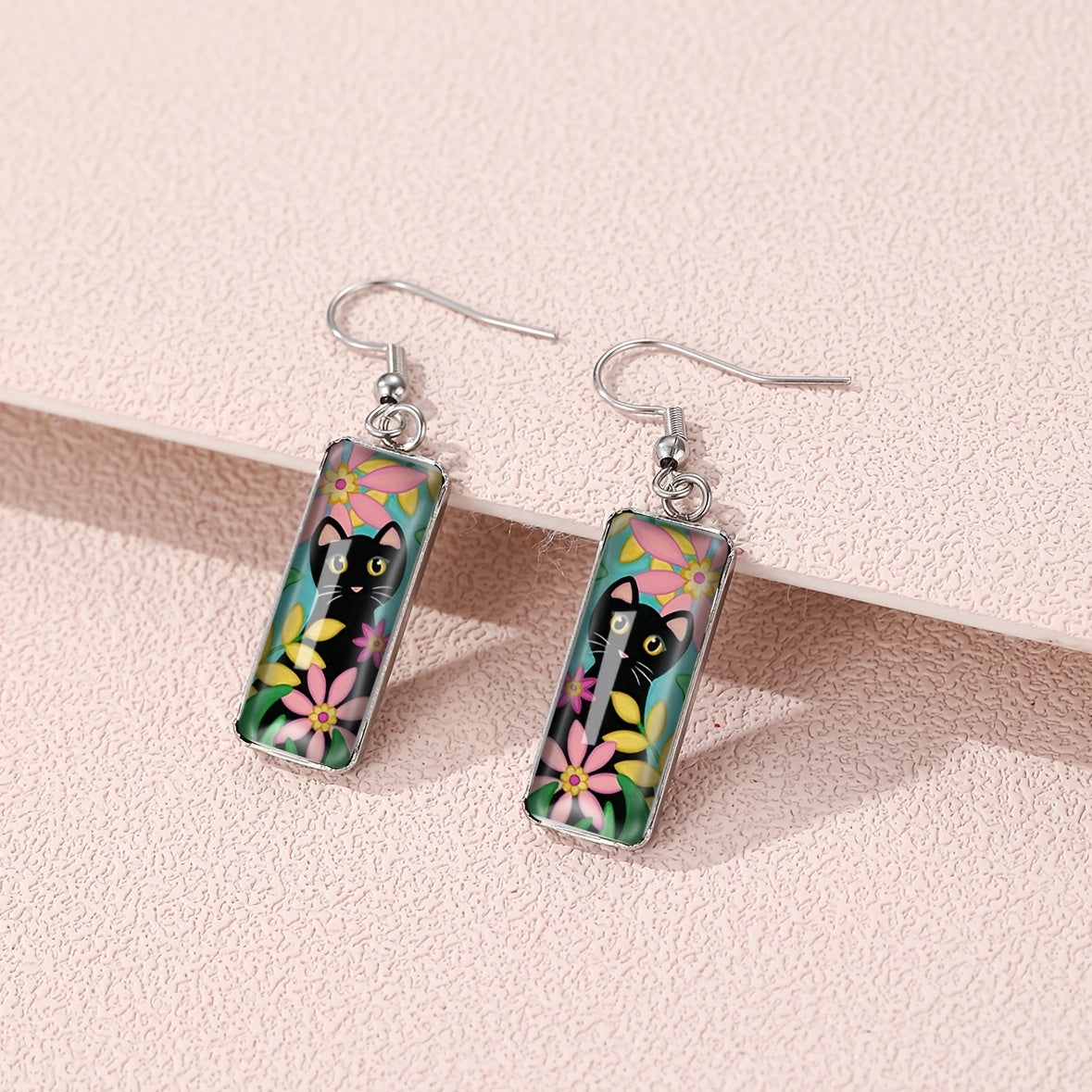 These cute cat pattern rectangle drop hook earrings are perfect for adding a fun touch to your outfit. They make great holiday decor and are a wonderful gift for women and girls.