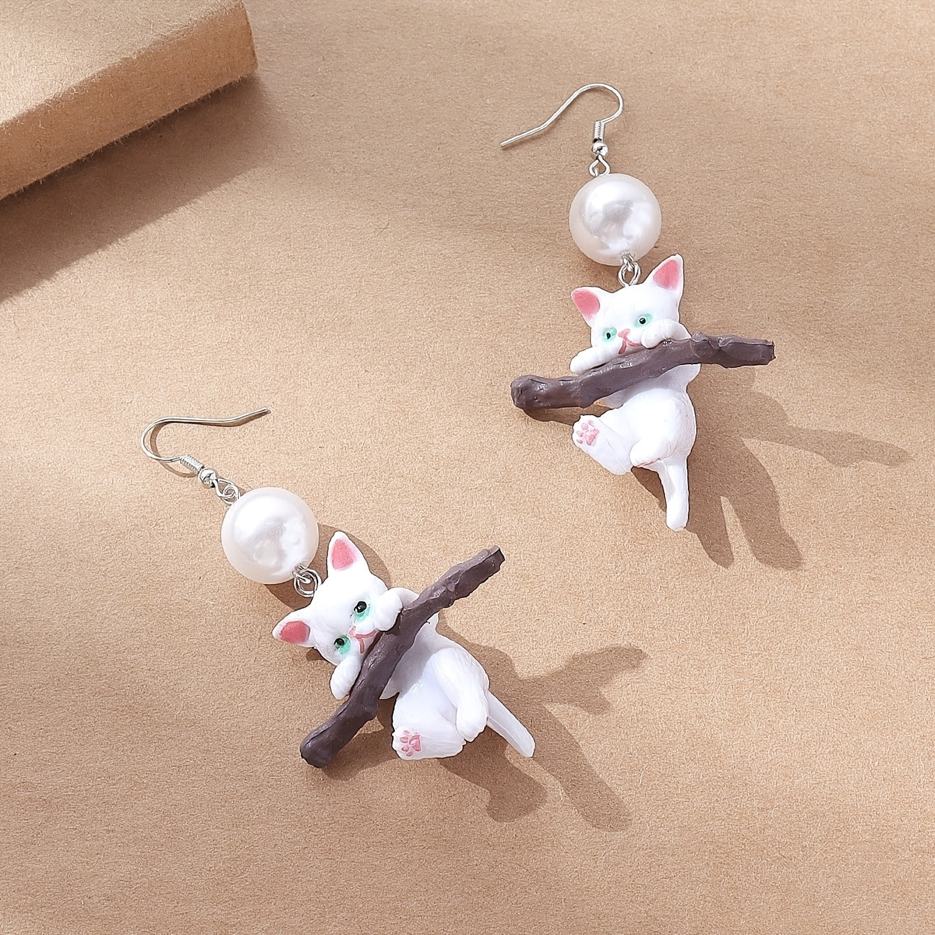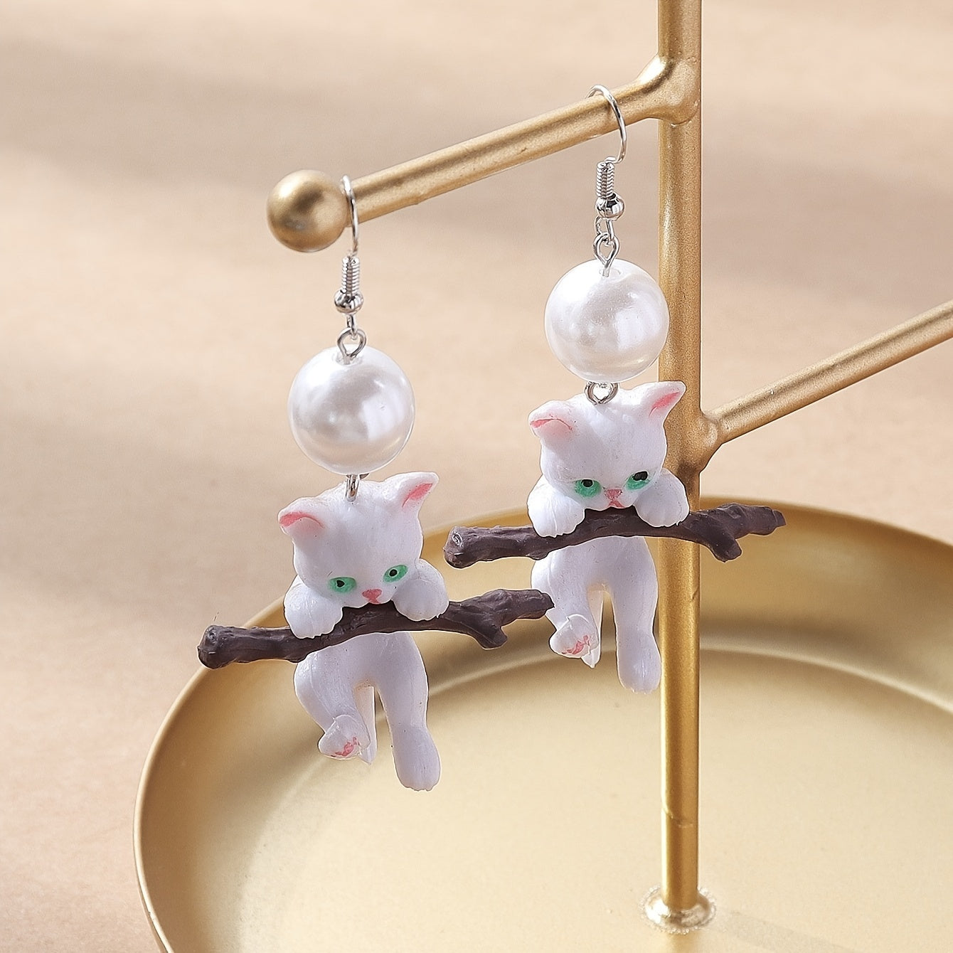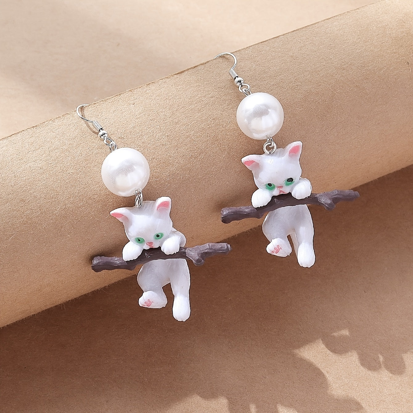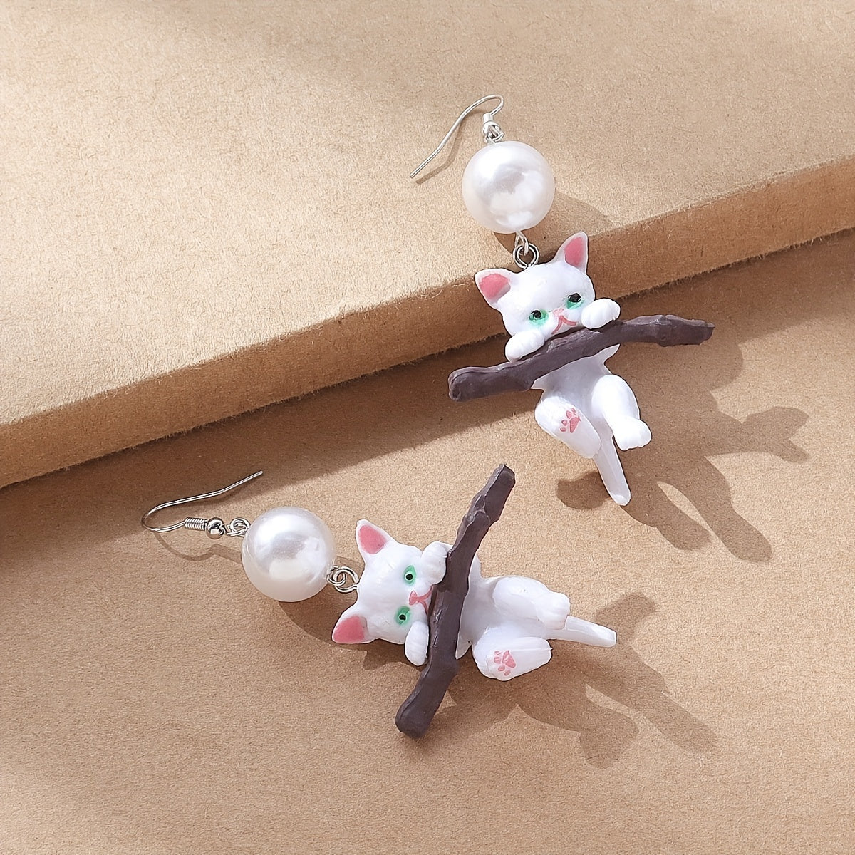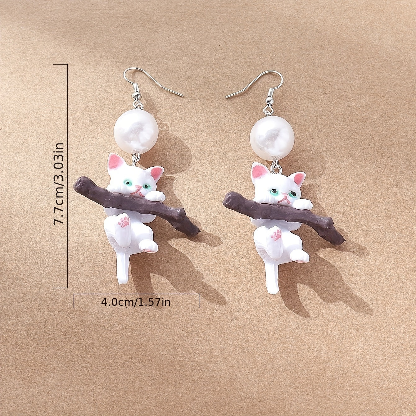 These elegant cat resin drop earrings are adorned with faux pearls, perfect for women and girls who love animals. Add a whimsical touch to your outfit.