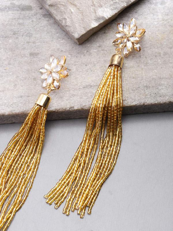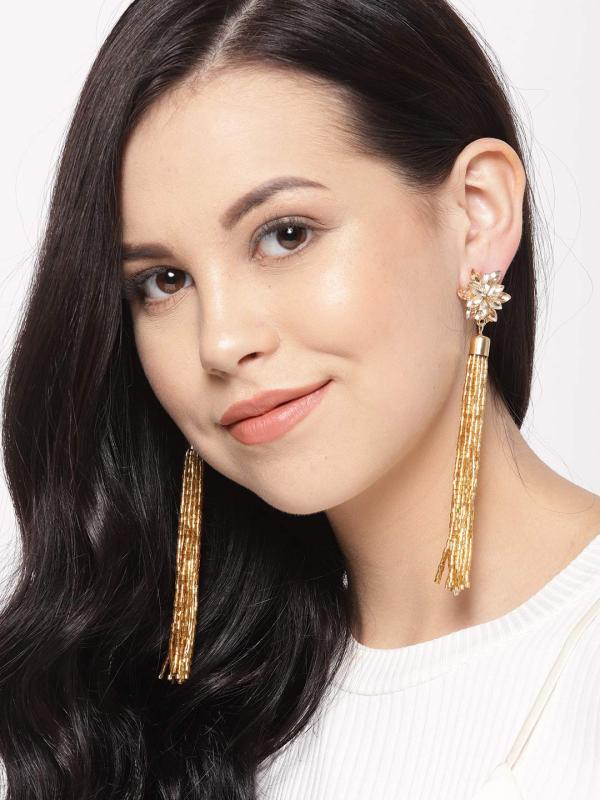 Make a statement with these trendy tassle earrings, perfect for any glamorous occasion.