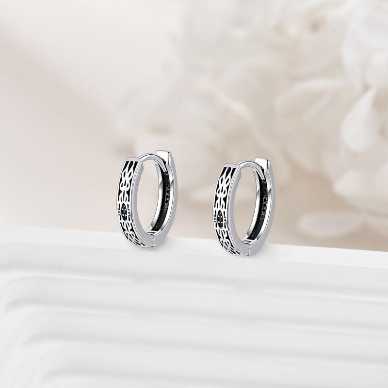 These anti-allergic Celtic hoop earrings are made from 925 sterling silver, perfect for sensitive ears. The intricate design features animal motifs, making them a unique and stylish accessory.