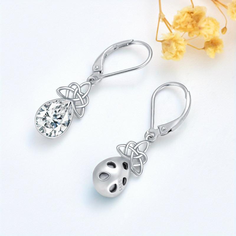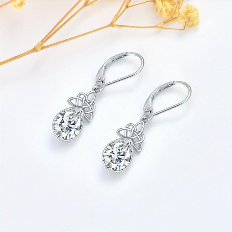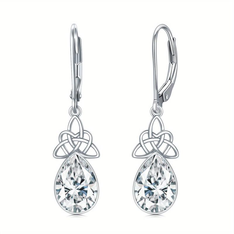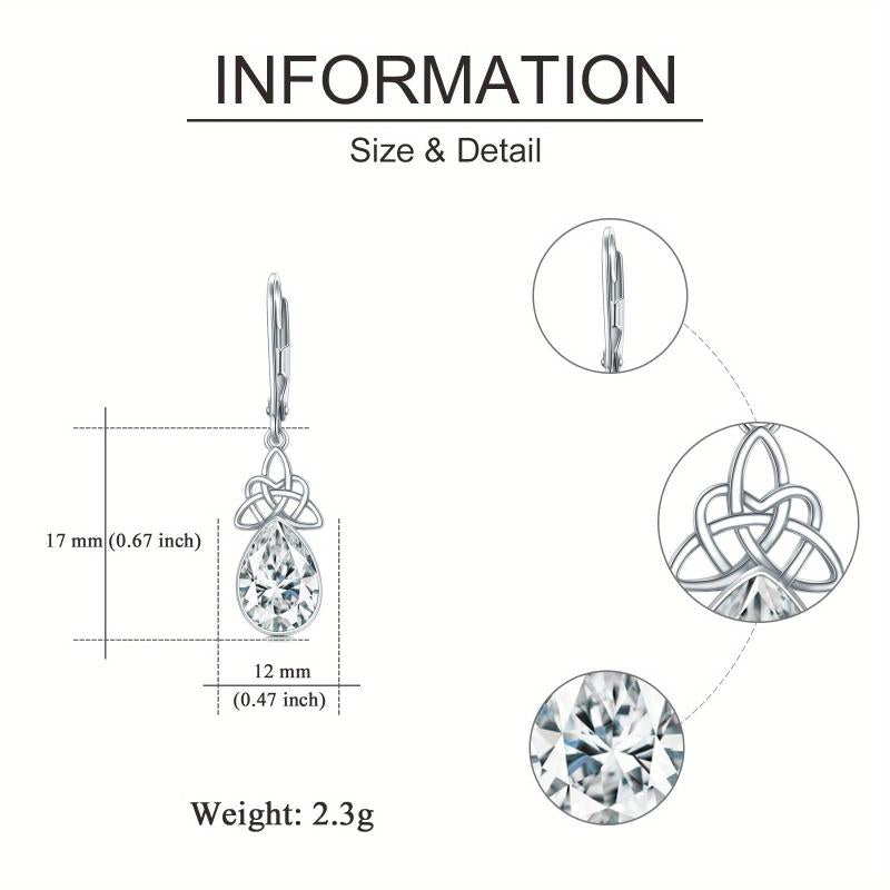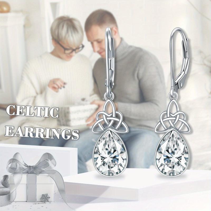 Add a touch of elegance to your attire with these Celtic knot earrings. Made of 925 silver, these teardrop leverback earrings feature the April birthstone, making them a perfect gift for someone special.