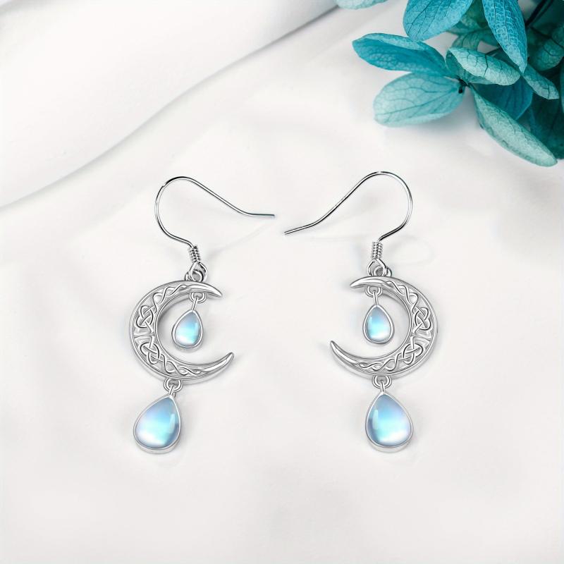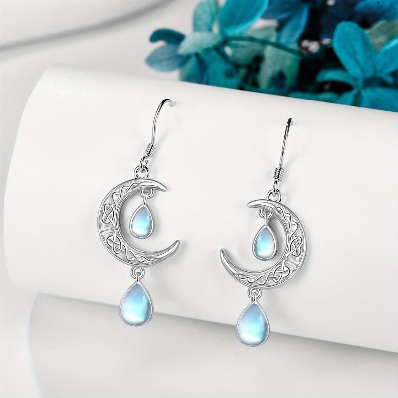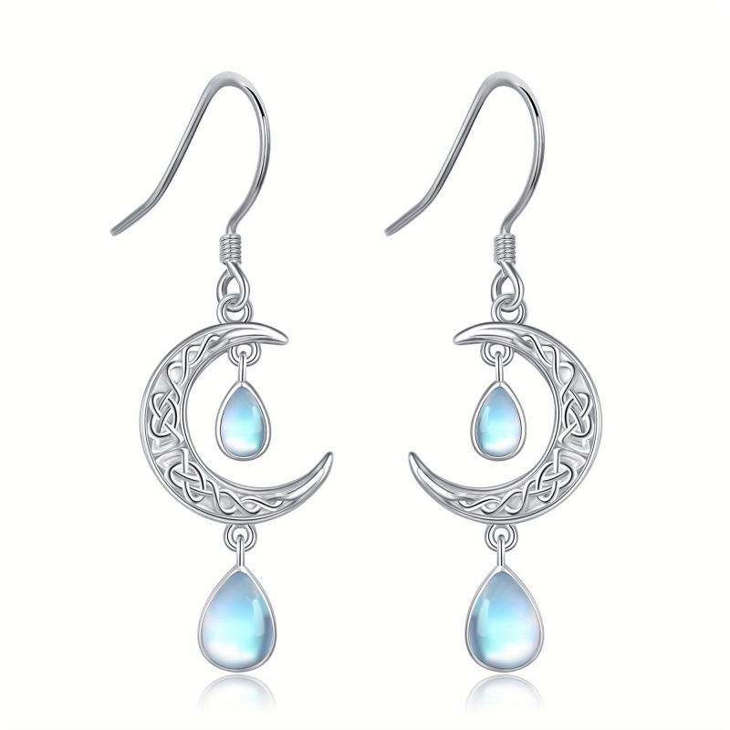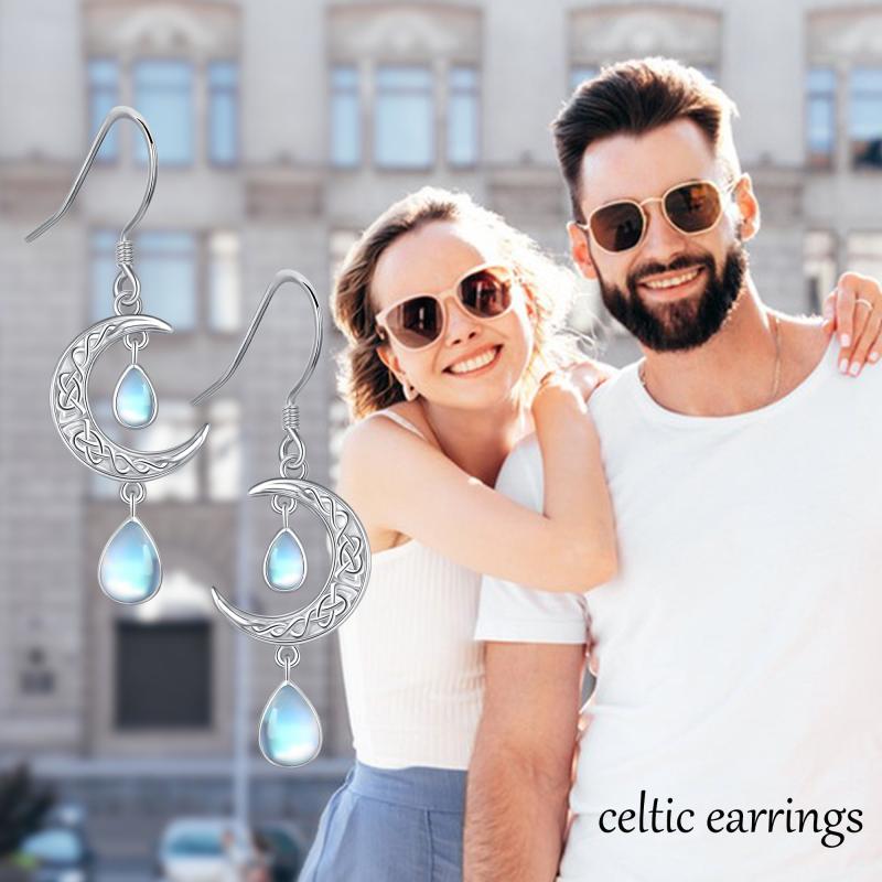 Discover celestial beauty with these Celtic Moon Earrings featuring moonstone accents. Crafted from 925 sterling silver, these earrings are a stunning addition to any Irish jewelry collection.