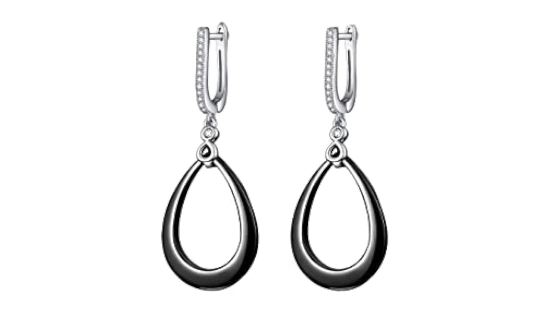 Add some sparkle to your look with these teardrop dangle earrings featuring ceramic teardrops and pear stud zirconia studded accents. The stainless steel plating adds a touch of elegance.